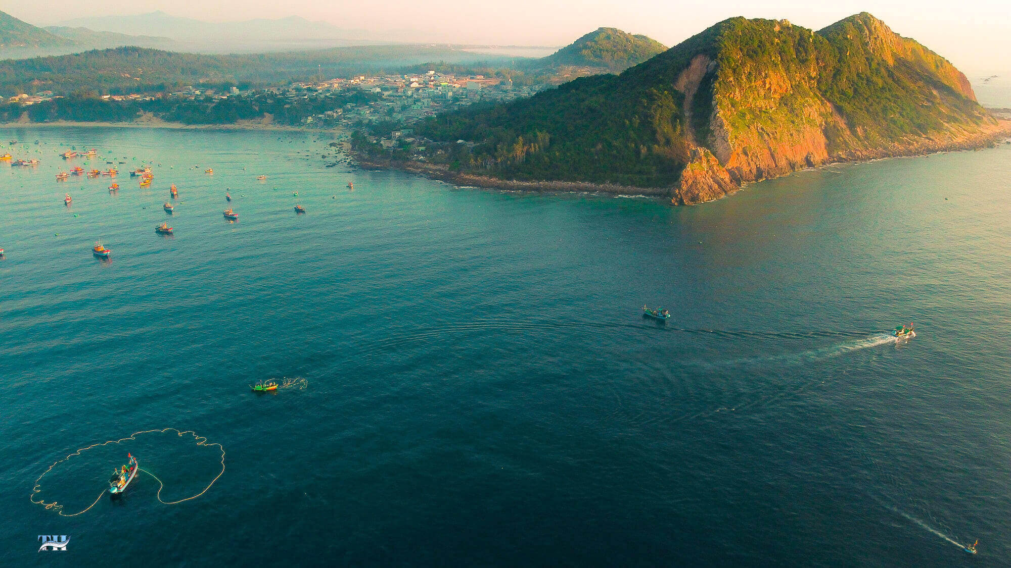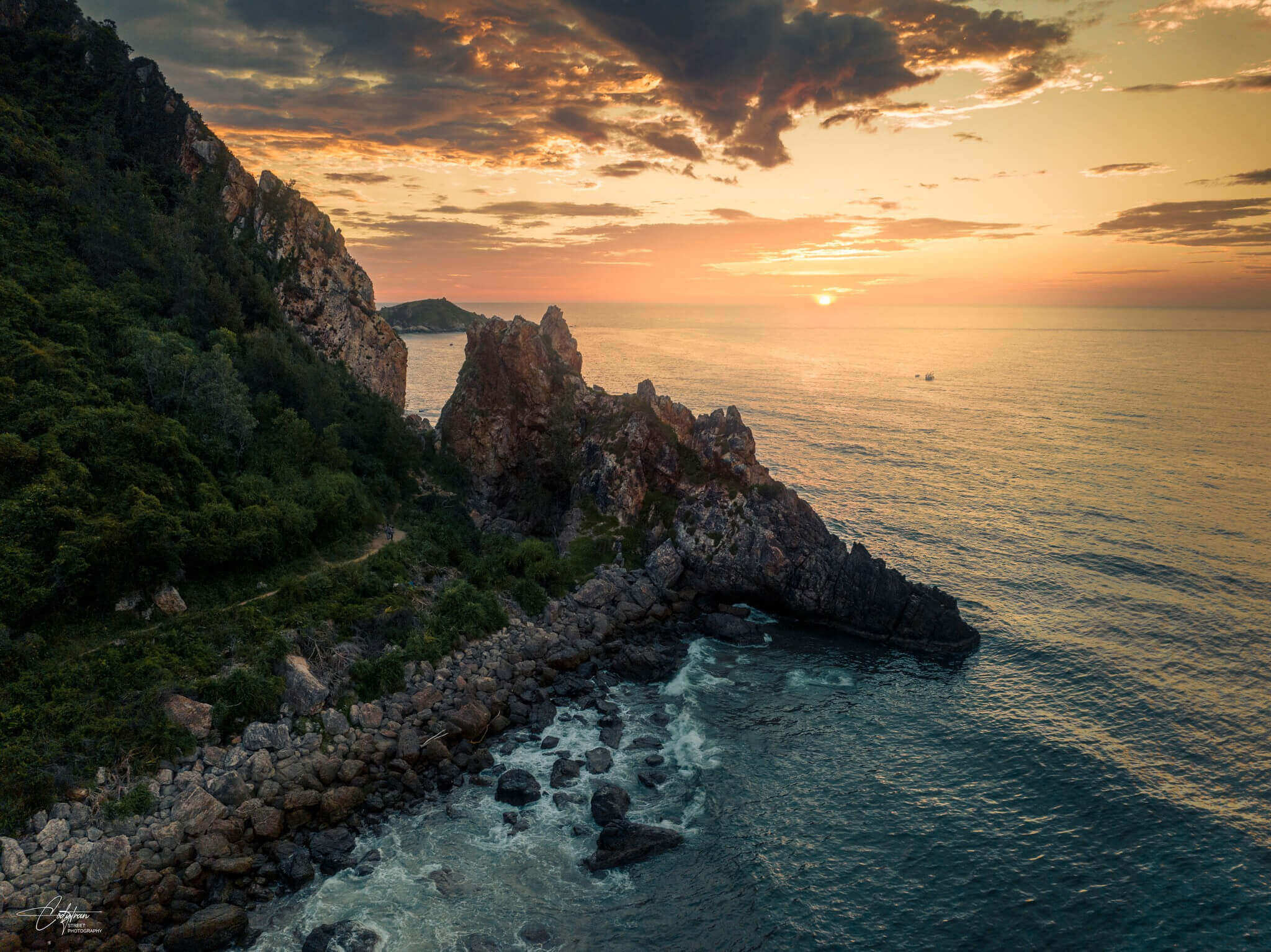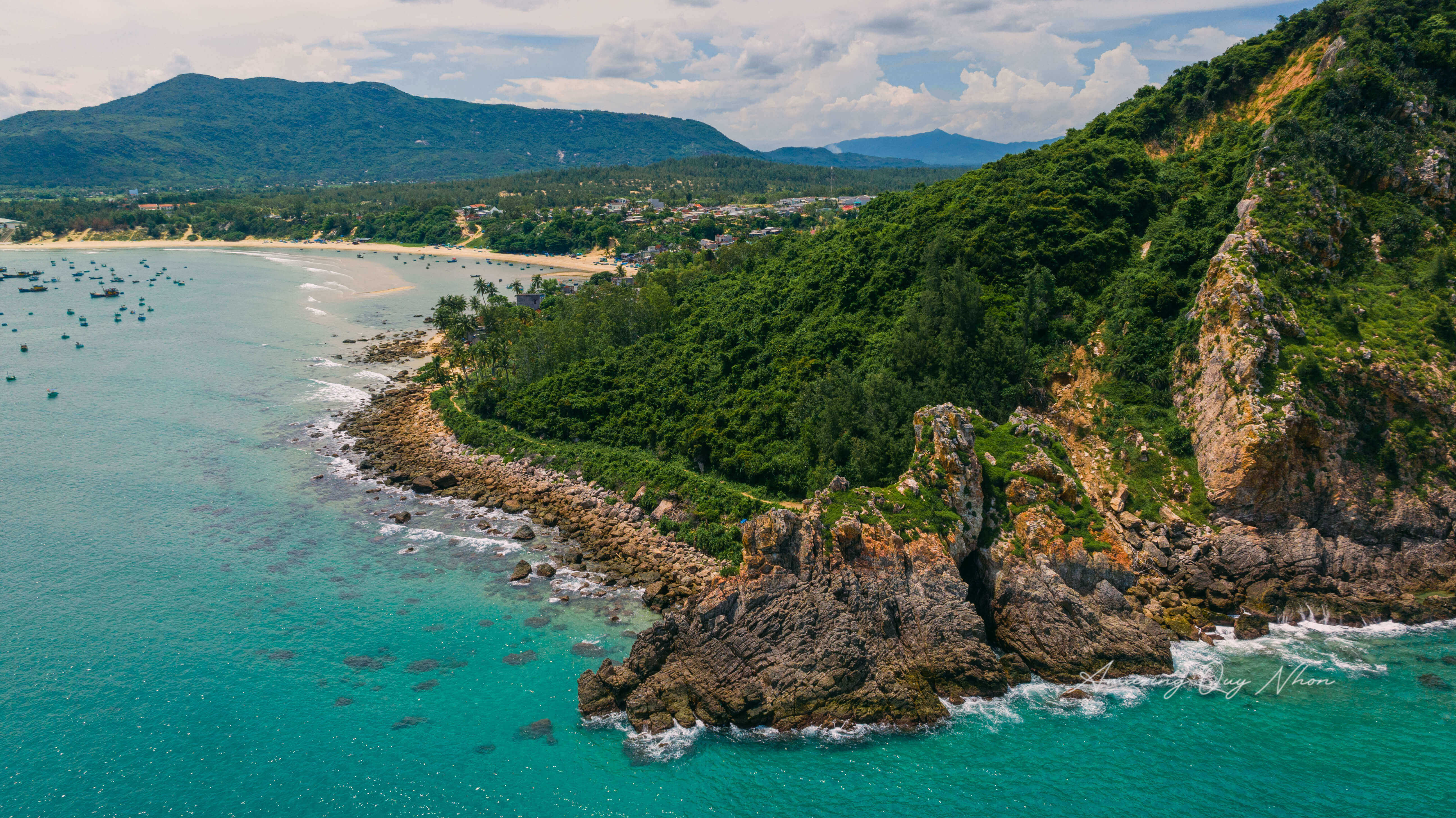 Nhìn từ xa hoặc từ trên cao,mỏm núi trông tựa như một con rồng đang vươn mình ra biển lớn. Tới đây,ngoài check-in những bãi đá đẹp,du khách có thể kết hợp ghé làng chài Tân Phụng,thưởng thức hải sản “rẻ như cho”.