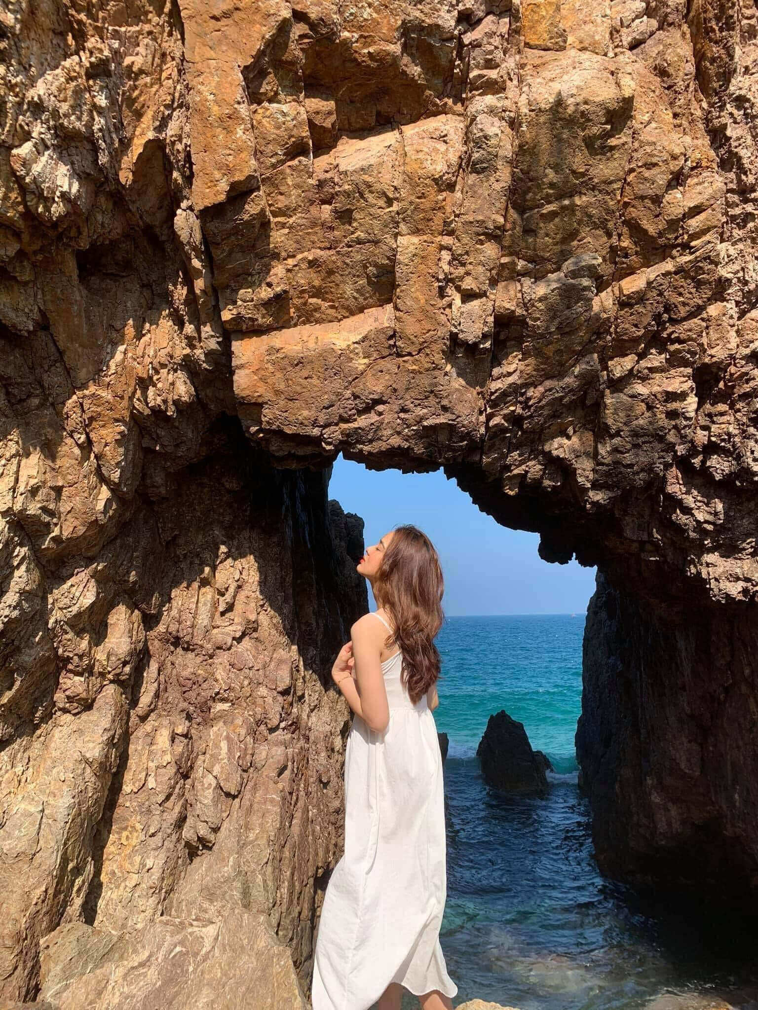 Đặc biệt,giữa lòng núi đá này còn có một hang động đẹp lạ,nằm xuyên ra biển,là nơi giao thoa giữa những ghềnh đá với làn nước biển trong xanh. Đây cũng là góc check-in được nhiều du khách tìm đến và thỏa sức tạo dáng,chụp hình.