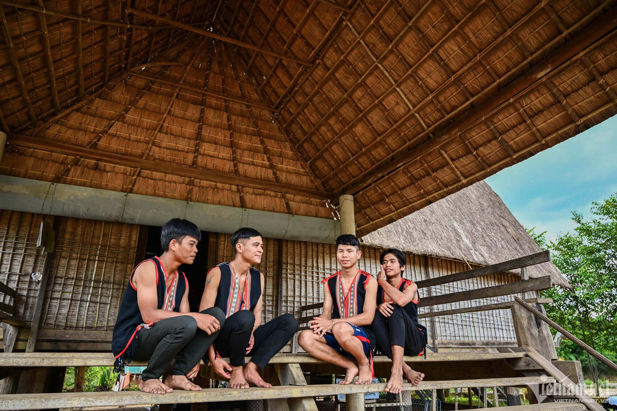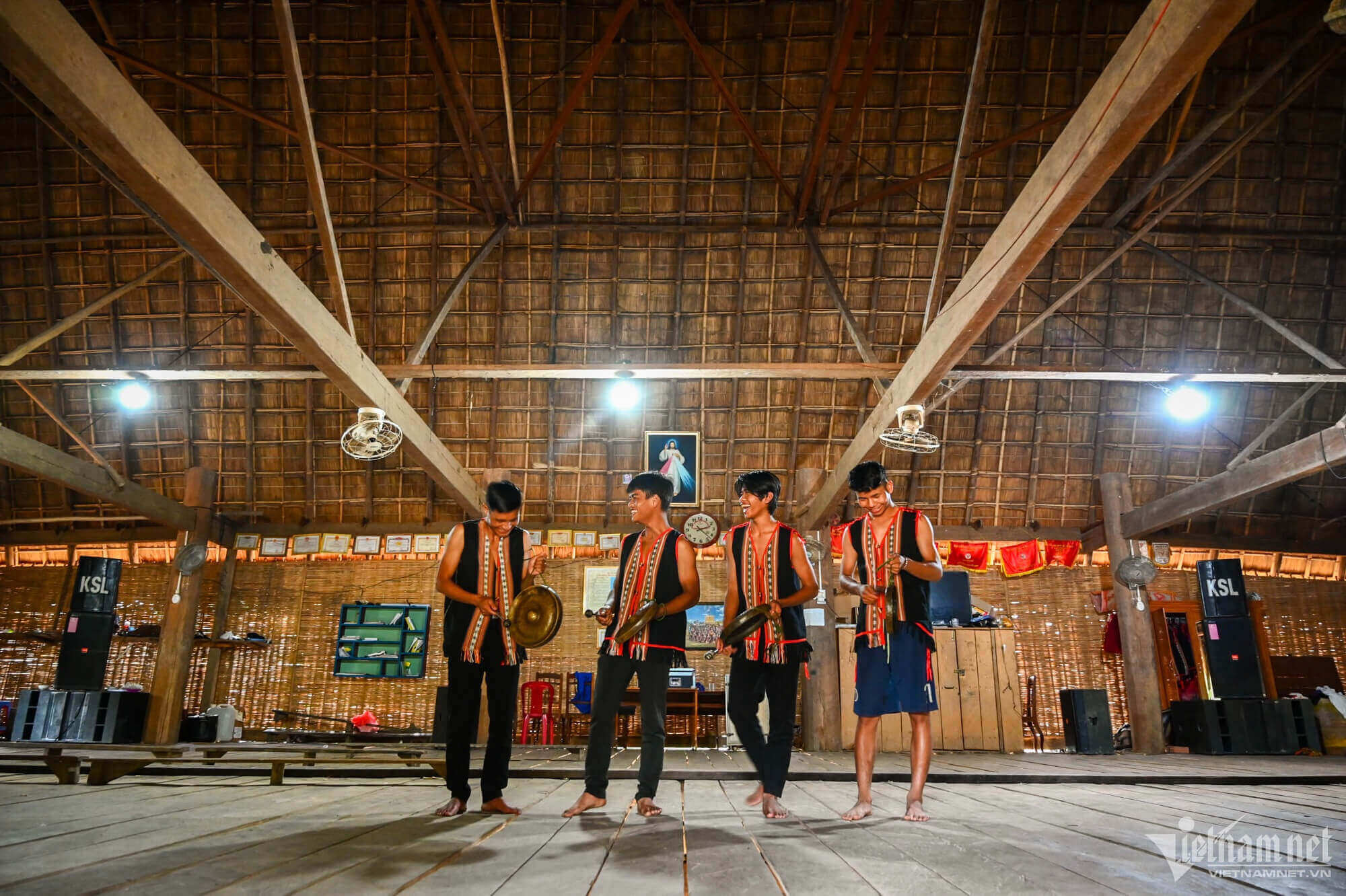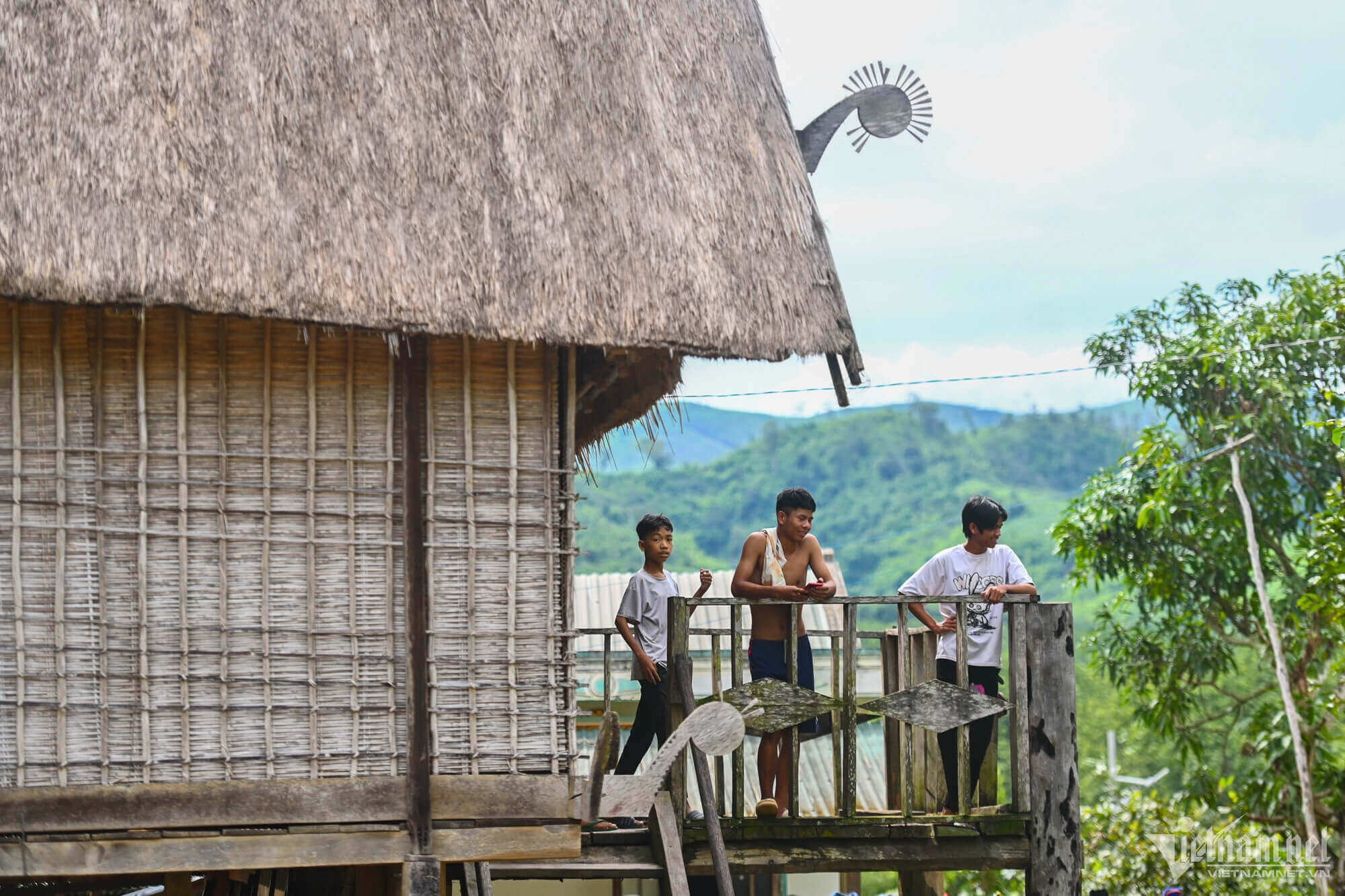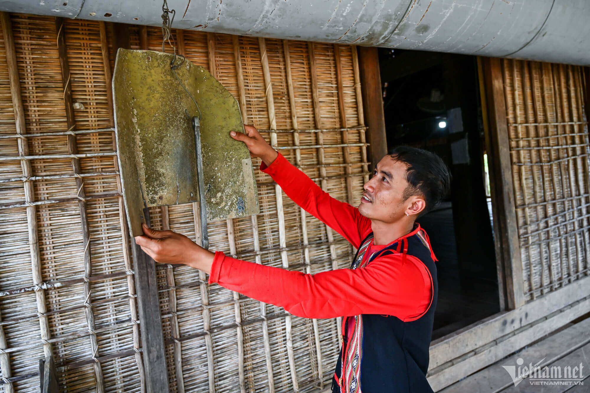 Chiếc kẻng được mang từ ngôi nhà rông cũ qua dùng để thông báo,tập hợp dân làng.