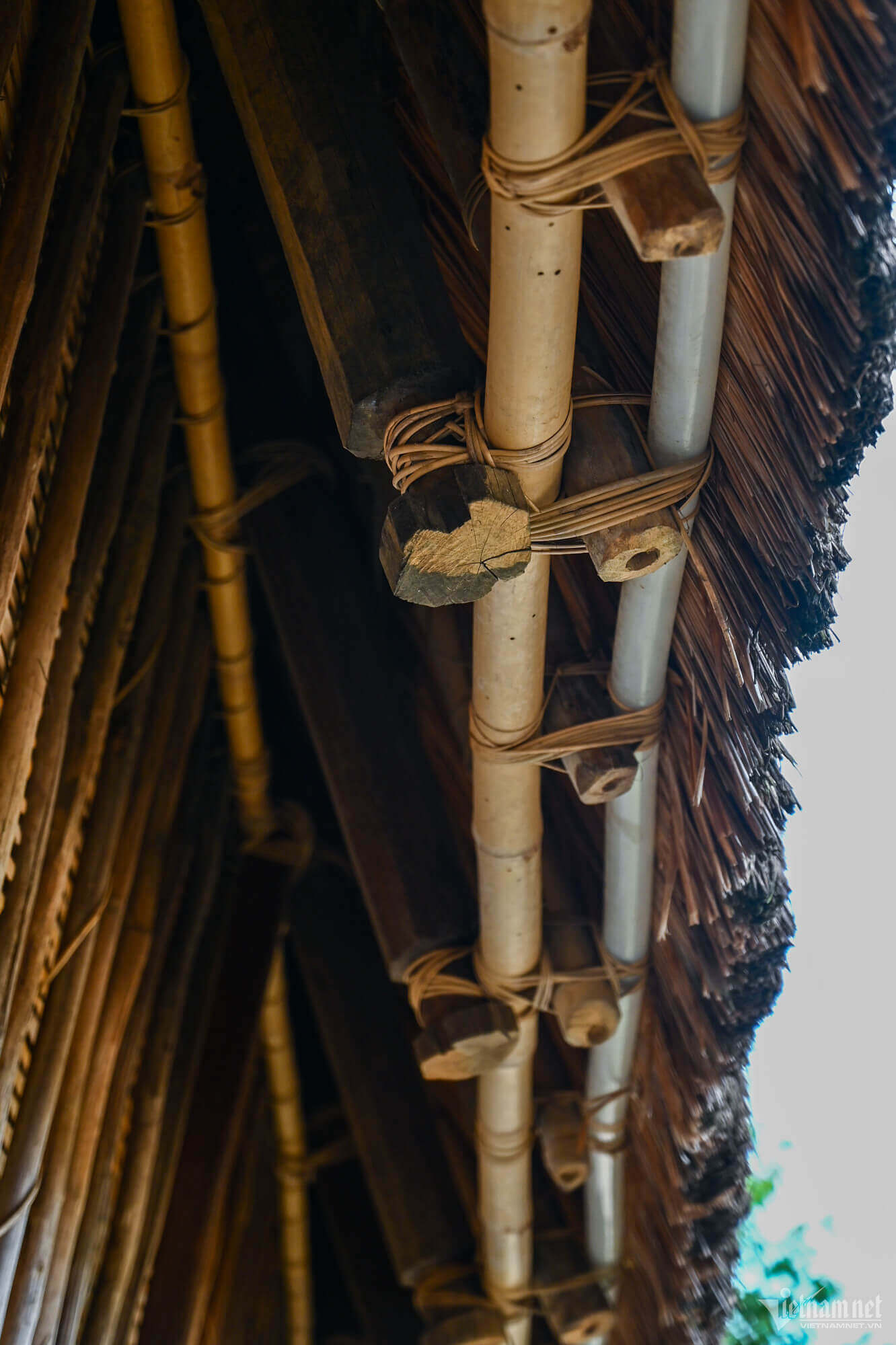 Phần mái được kết nối với nhau bởi các thân cây dài. Phía mái bên trong chỉ được đan chéo bằng nhiều cây gỗ,tre nhưng vẫn rất vững chãi và kiên cố.