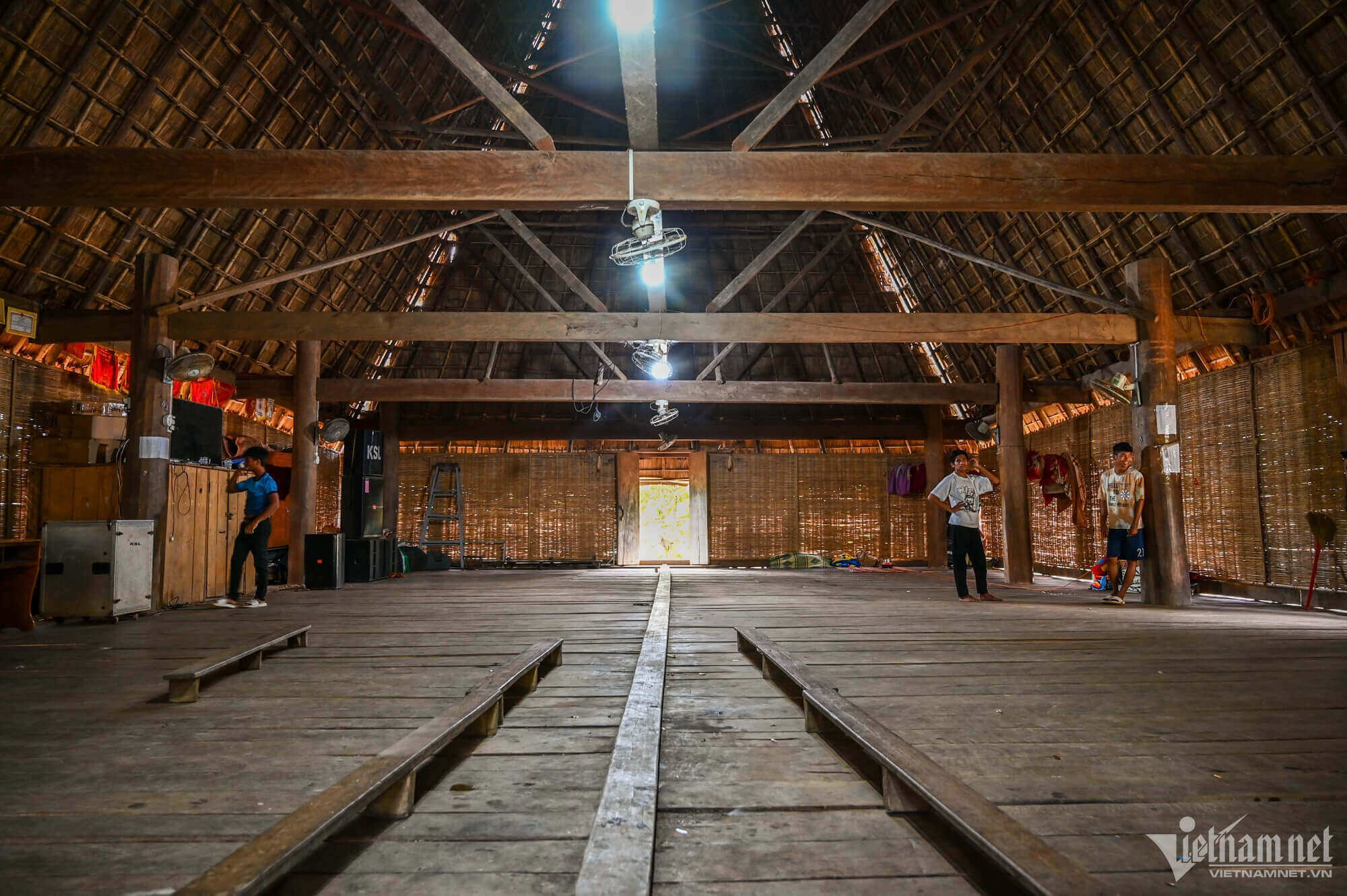 Ngôi nhà sừng sững với phần mái cao hơn 20m,rộng hơn 320m2,do đó có thể tập hợp toàn bộ người dân trong làng vào mỗi dịp lễ hội.