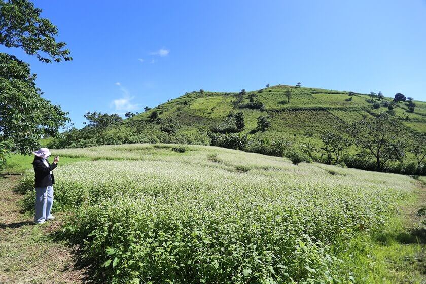 “Sau khi tìm hiểu thời gian cây nở hoa với thời điểm tổ chức lễ hội hoa dã quỳ,tôi đã tính toán cân đối diện tích để khi hoa dã quỳ bắt đầu tàn thì du khách không thất vọng vì đã có hoa tam giác mạch. Hiện vườn đang thu vé chụp ảnh check-in 20 ngàn đồng/người,chủ yếu để bù chi phí giống,công trồng trọt,chăm sóc”-chị Tuyết thổ lộ.