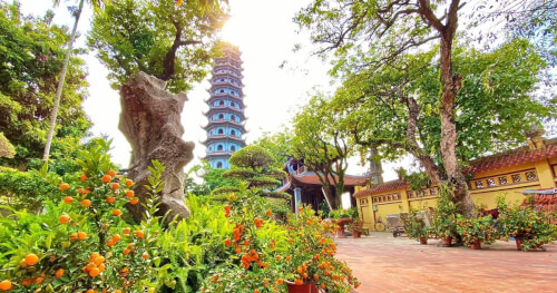 Khi đặt chân đến chùa Bằng,bạn sẽ cảm nhận ngay không khí bình yên khác hẳn sự ồn ào phố thị. Khuôn viên chùa rộng thoáng,nhiều cây xanh rợp bóng khiến không gian luôn mát mẻ. Đi dạo quanh vườn tháp,mình thấy lòng như lắng lại,nhẹ nhàng và thanh thản. Đây chính là nơi lý tưởng để tìm sự cân bằng cho tâm hồn sau những ngày vội vã.