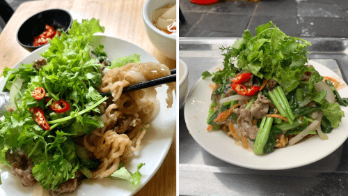 Thực đơn không quá phong phú nhưng vẫn đủ để thực khách có lựa chọn phù hợp. Món được ưa chuộng nhất là phở xào và phở áp chảo,mỗi loại mang hương vị riêng biệt. Phở xào thường có sợi mềm,dai nhẹ,kết hợp cùng thịt bò hoặc gà đậm đà. Trong khi đó,phở áp chảo lại giòn rụm bên ngoài,mềm bên trong,ăn kèm với sốt sánh mịn khiến nhiều người thích thú.