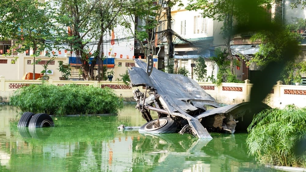 Mảnh xác chiếc B52 vẫn nằm đó đến tận hôm nay,một phần thân kim loại chìm dưới nước,phần còn lại nhô lên mặt hồ. Theo lời kể của người dân,sau vụ nổ,nhiều bộ phận của máy bay văng xa hàng trăm mét,còn phần nặng nhất rơi đúng giữa hồ. Khi đứng nhìn,bạn vẫn có thể thấy bánh lái,khung thân gỉ sét và biểu tượng tròn trắng trên nền đen của Không lực Mỹ. Mỗi khi hoàng hôn buông xuống,mặt nước lấp lánh ánh vàng,phản chiếu mảnh xác B52 như một khung ảnh nhuốm màu thời gian,khiến ai nhìn cũng cảm thấy xúc động.