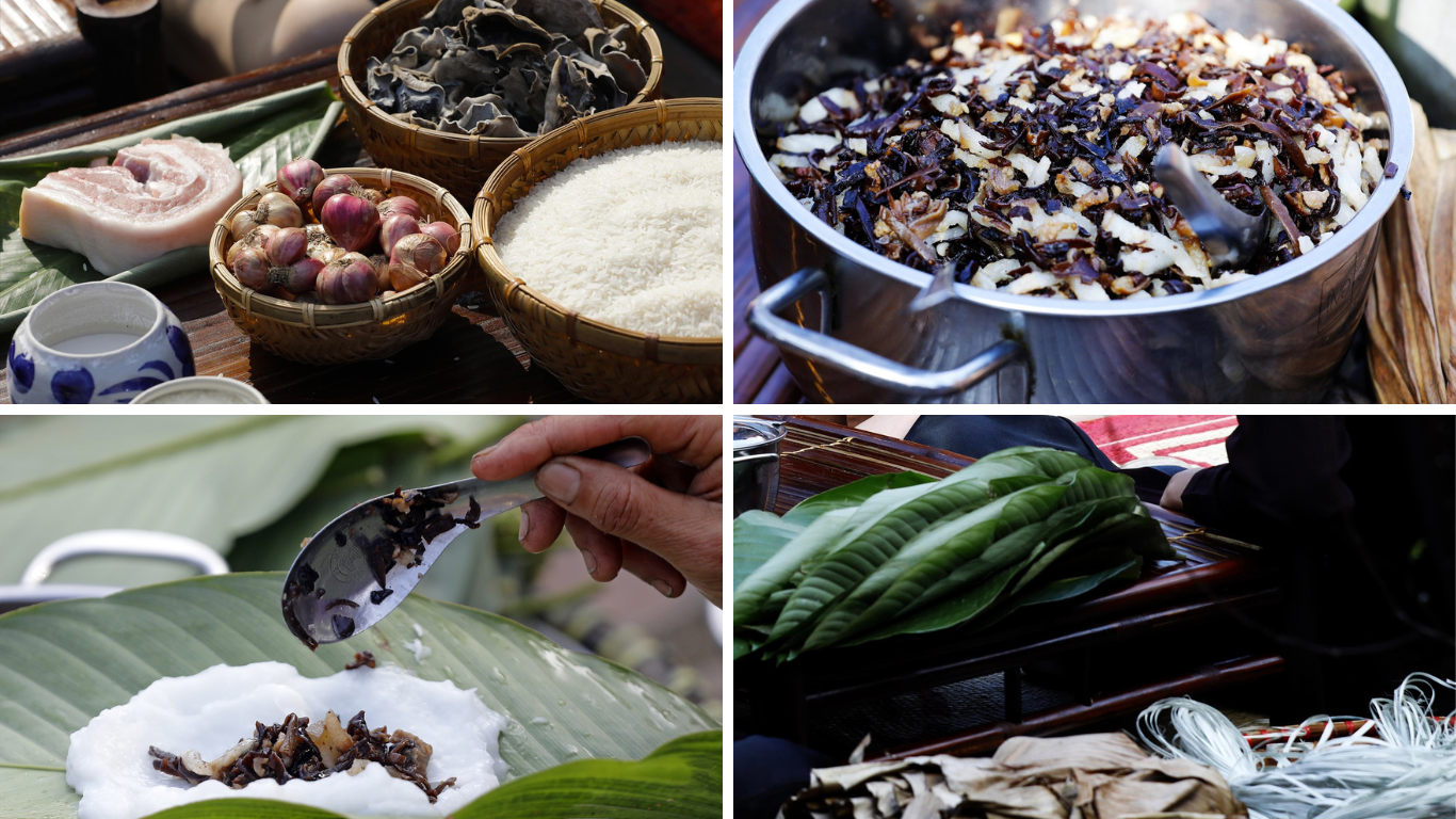 Nhân bánh là phần thể hiện tay nghề của người thợ. Mộc nhĩ được ngâm nở,băm nhỏ,xào với hành phi thơm và chút tiêu đen để dậy mùi. Có người cho thêm thịt ba chỉ thái hạt lựu để bánh thêm vị béo bùi,hài hòa với lớp bột mịn bên ngoài. Từng công đoạn đều đòi hỏi sự tỉ mẩn,chỉ cần sai một chút,bánh sẽ mất hương vị đặc trưng của Phú Nhi.