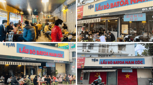 Giữa lòng Hà Nội,Tiệm Nam Cóc nằm ở số 2 đường An Trạch,phường Cát Linh,quận Đống Đa,là một điểm đến hoàn hảo cho những ai yêu thích món lẩu bò Ba Toa Đà Lạt. Với không gian ấm cúng,đậm chất Đà Lạt,quán là nơi lý tưởng để bạn thư giãn và thưởng thức món ăn mang đậm hương vị của miền cao nguyên.