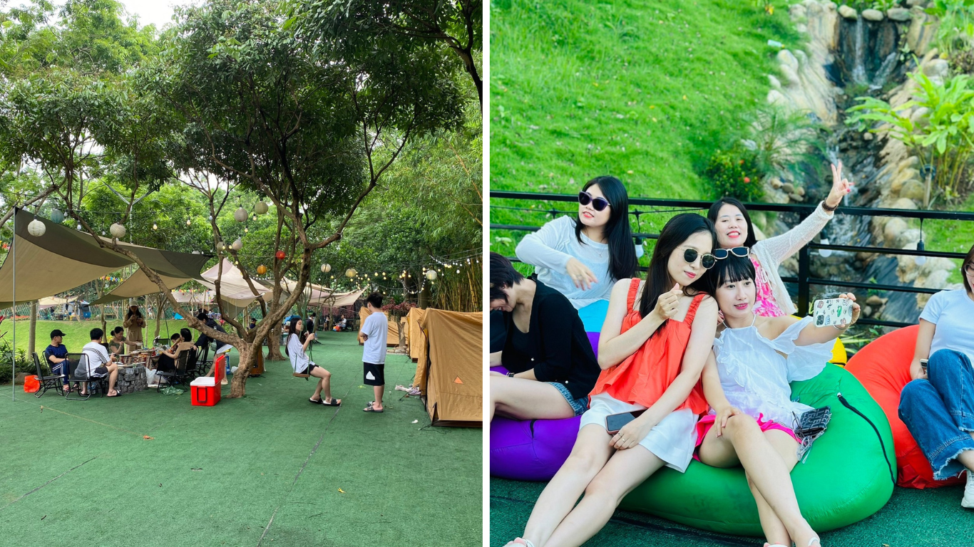 Buổi chiều,khi ánh nắng dịu đi,khu vườn như khoác lên lớp áo vàng óng ánh. Những chiếc ghế dài được đặt rải rác để khách nghỉ ngơi,đọc sách hoặc ngắm cảnh. Nhiều nhóm bạn trẻ chọn đây để chụp ảnh kỷ niệm,còn gia đình thì có thể thả diều,chơi bóng hay đơn giản là đi dạo. Cảnh quan hài hòa giúp nơi này vừa mang nét tự nhiên,vừa có chút tinh tế của khu sinh thái đô thị.