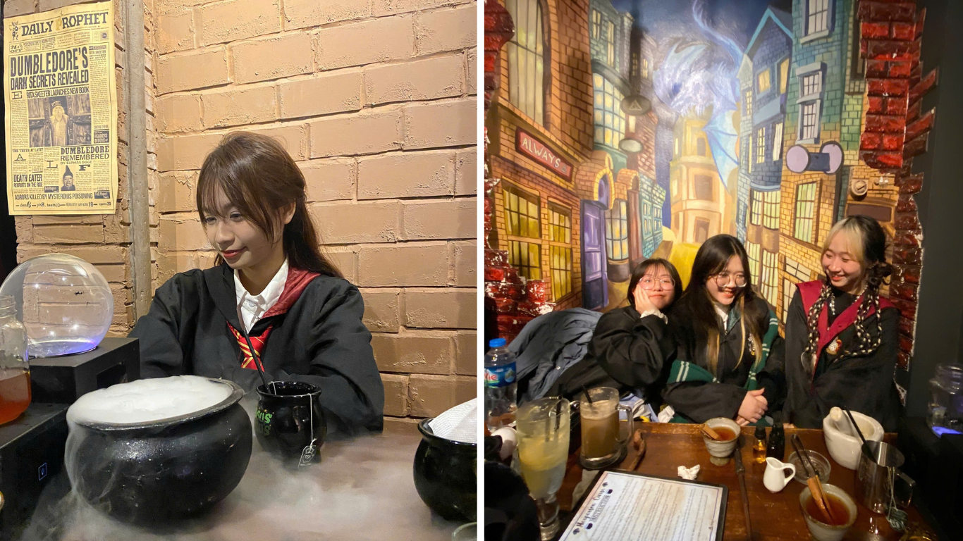 Điểm nhấn trong thực đơn chính là bia bơ (Butterbeer) – món mà fan Harry Potter nào cũng muốn thử. Vị ngọt nhẹ,bọt béo và hương thơm từ kem bơ khiến món này được yêu thích nhất. Ngoài bia bơ,quán còn sáng tạo nhiều loại đồ uống khác lấy cảm hứng từ các loại độc dược và phép thuật. Tên gọi của chúng tạo cho khách cảm giác vừa tò mò vừa hứng thú khi gọi món.