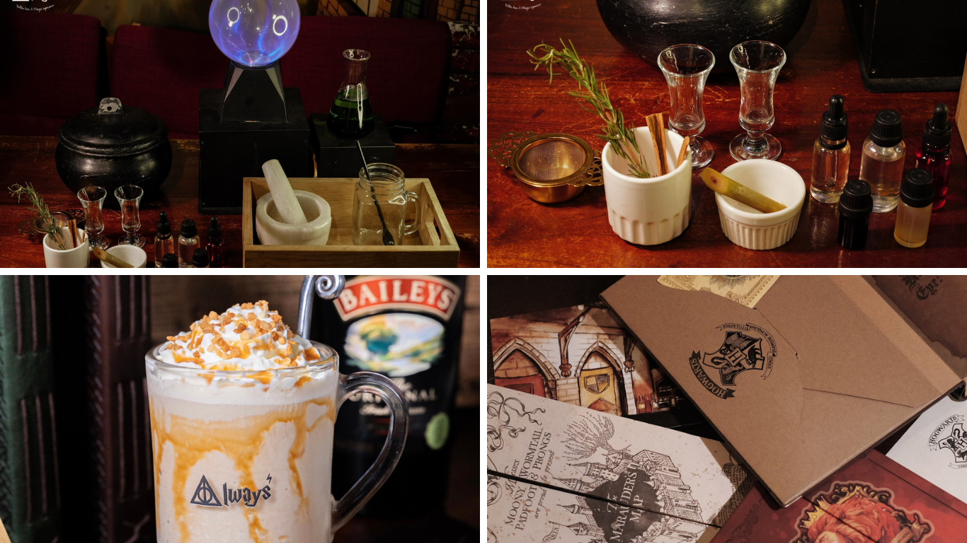Bước vào Always Café,bạn sẽ bắt gặp ngay những bức tường treo tranh,biểu tượng của bốn nhà trong trường Hogwarts. Mỗi góc nhỏ đều được sắp đặt tỉ mỉ,từ giá sách,đèn chùm đến lá cờ và những vật dụng quen thuộc trong phim. Cách bài trí tạo nên bầu không khí trầm ấm,gợi cảm giác như đang bước vào hành lang cổ kính. Điều này giúp khách vừa thưởng thức đồ uống vừa như được trải nghiệm một buổi phiêu lưu nho nhỏ.