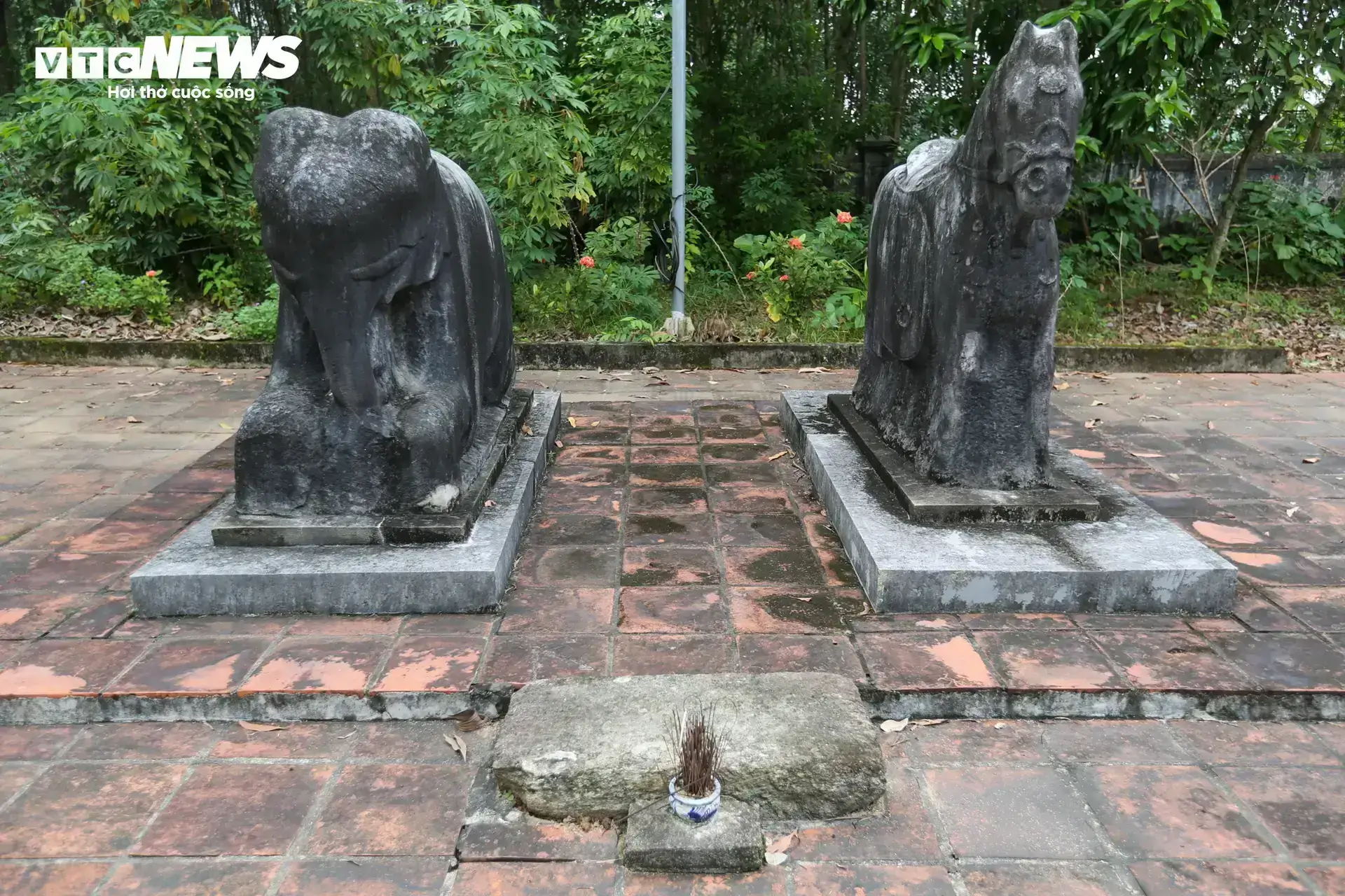 Bước vào trong sân có cặp ngựa và con voi được tạc bằng đá,đặt đối xứng nhau.
