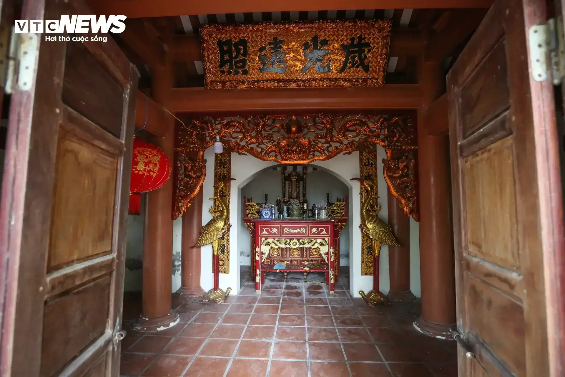 Qua khoảng sân rộng đến nhà tiền tế (hay nhà bái đường),tiếp sau là điện thờ. Bên trong điện thờ đặt bài vị,hòm sắc và bát hương thờ 3 anh em họ Lê.