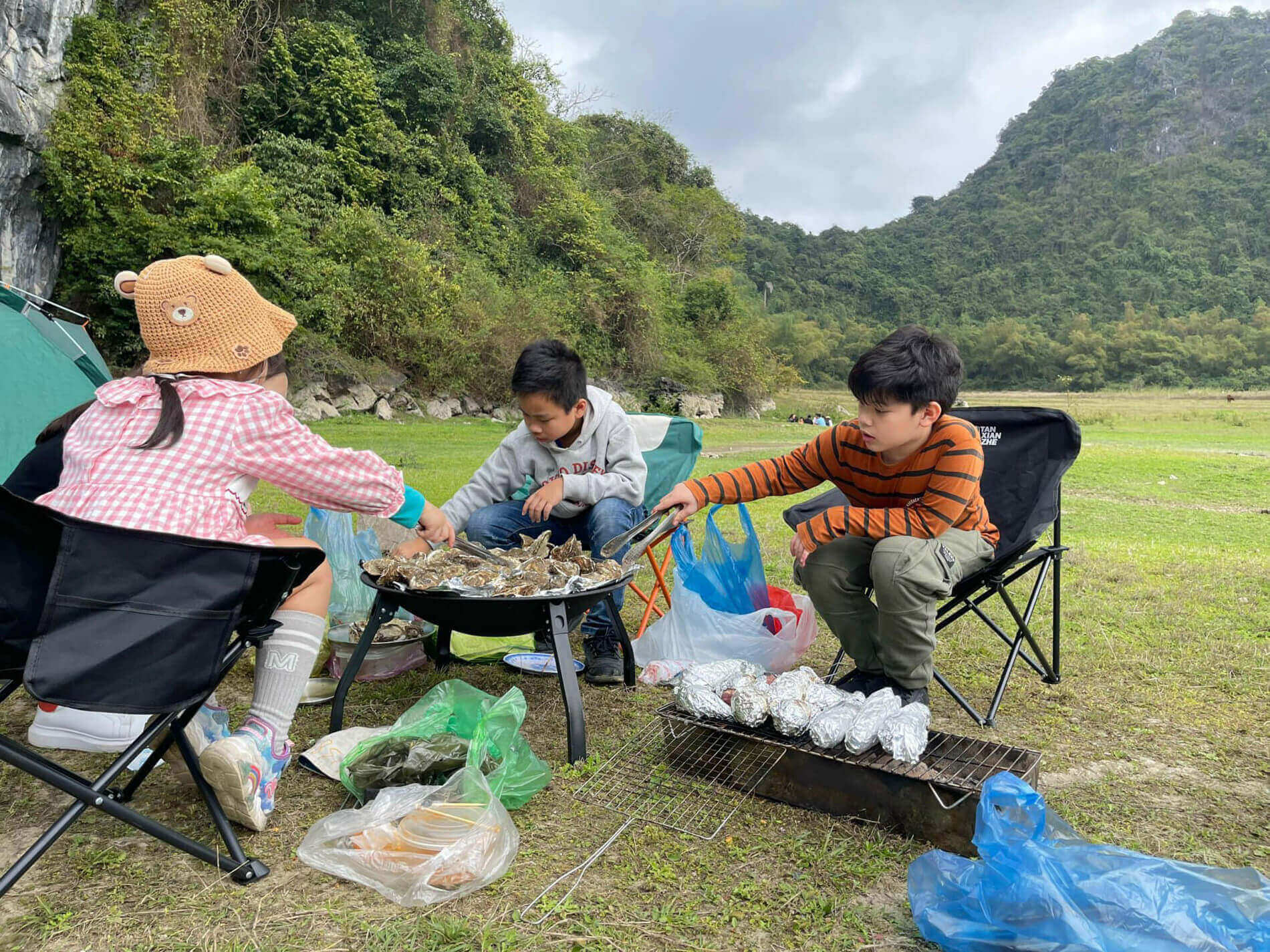 Nhiều em nhỏ theo gia đình tới trải nghiệm dã ngoại,vui chơi tại thung lũng xanh mát,bình yên (Ảnh: Hội Cắm trại - Camping HP).