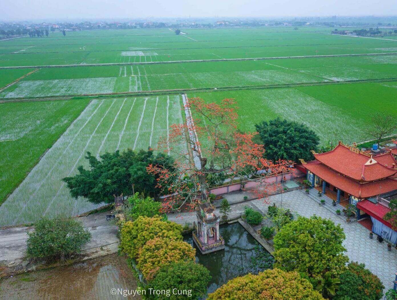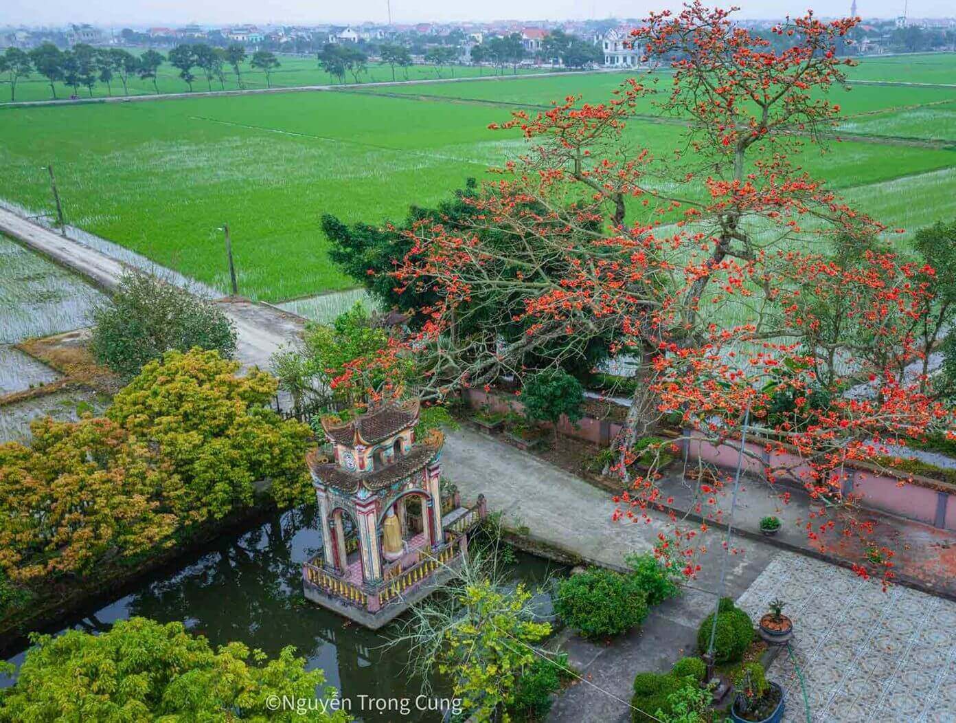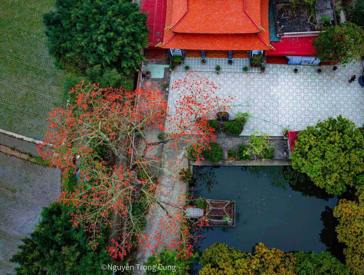 (SGTT) – Cây hoa gạo nở đỏ rực một góc chùa Linh Sơn (huyện Đông Hưng,Thái Bình) tạo nên khung cảnh miền quê thanh bình,mộc mạc.