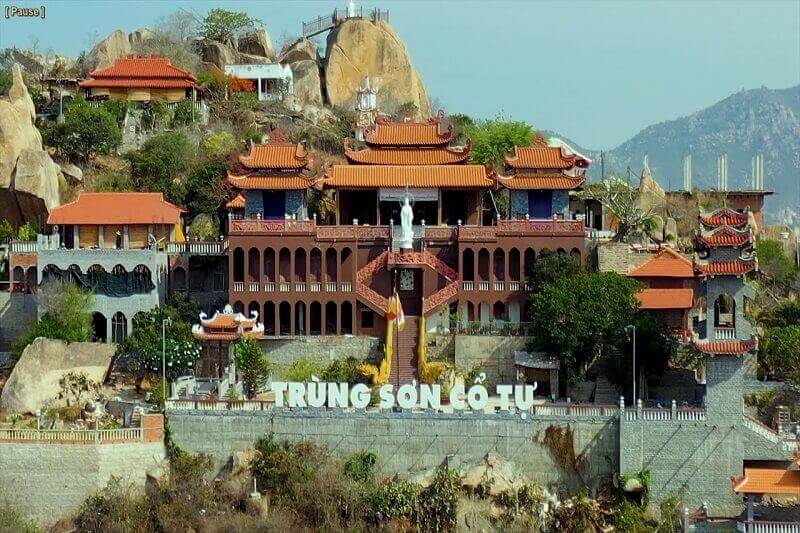 Trùng Sơn cổ tự là một tổng thể công trình kiến trúc hoành tráng được hòa thượng Thích Bửu Hiền tạo lập vào năm 1973 tại di tích lịch sử núi Đá Chồng (núi Phụng Hoàng), thuộc huyện Ninh Hải, tỉnh Ninh Thuận. Ban đầu, chùa chỉ là một ngôi nhà thờ Phật giản dị trên núi, là nơi hàng ngày nhà sư Bửu Hiền dùng làm nơi tu tập, đồng thời cũng là nơi để bà con, phật tử viếng thăm, khấn phật, cầu an. Dần về sau, ngôi am nhỏ được nhà sư mở rộng, xây thêm các hạng mục, tiểu cảnh nhằm mục đích làm nơi nghỉ ngơi, ngắm cảnh cho bà con, phật tử gần xa mỗi khi lên viếng phật. Qua đời của Hòa thượng Thích Bưu Hiền, đến đời của Thượng tọa Thích Tâm Tường. Ngôi am được mở rộng xây dựng trên diện tích, quy mô hoành tráng gồm nhiều hạng mục như cổng tam quan, chánh điện, nhà thờ tổ, … Năm 2012, do hạn hẹp về kinh phí nên chùa chỉ hoàn thành trước hạng mục chính điện, nhà thờ tổ, sân hiện, bậc cấp tam quan lên xuống … riêng hạng mục tam quan, các tiểu cảnh, khu vực đặt thờ các tượng phật, bồ tát ngoài trời, … vẫn đang trong quá trình hoàn thiện. Do việc xây dựng theo địa hình đồi núi nên rất khó phân biệt đâu là tiền đường, bái đường, chính điện, cổng tam quan hay nhà thờ tổ. Chính vì thế mà tổng thể công trình chùa vừa tạo ra tính sinh động theo mô típ kiến trúc độc đáo, đồng thời cũng tạo ra tính phức tạp khi nhận diện. Sau hơn 40 năm xây dựng và hoàn thiện. Cho đến ngày nay, chùa đã trải qua ba đời trụ trì. Trong đó gồm: Hòa thượng Thích Bưu Hiền (người sáng lập), Thượng tọa Thích Tâm Trường (người kế nhiệm thứ hai và cũng là đệ tử của Hòa Thượng Thích Minh Tâm, sư huynh Hòa Thượng Thích Bưu Hiền), Đại đức Thích Nguyên Minh (trụ trì hiện nay, đệ tử Thượng tọa Thích Tâm Trường). Nhìn chung, các đời trụ trì của chùa Trùng Sơn đều có mối gắn kết của “tông môn pháp phái”. Trùng Sơn Cổ Tự có độ cao hơn 60m so với mặt nước biển. Đường dẫn lên chùa là đường tam cấp dốc, thẳng đứng với gần 500. Đi hết đường tam cấp, cảnh sắc mở ra đầu tiên chính là hạng mục tam quan còn đang xây dựng theo phong cách kiến trúc cổ thuần Việt. Tuy chưa hoàn thành, nhưng khi nhìn tổng thể, tam quan Trùng Sơn Cổ Tự là hạng mục vững chắc, bền bỉ, rộng lớn khi nguyên vật liệu hoàn toàn và bê tông, cốt thép và đá xanh. Qua tam quan, tiếp tục đi lên là khoảng sân hiên phía dưới, với điểm nhấn là nhiều cây cảnh và đôi rồng thời Lý Trần uy nghi, dũng mãnh. Từ sân hiên đi lên theo bậc tam cấp, chính là quần thể công trình kiến trúc gồm sân, chính điện, nhà thờ tổ, nhà khách, … mà ba đời trụ trì xây dựng. Chùa Trùng Sơn cổ tự còn nổi tiếng là nơi rất linh thiêng khi đây là nơi ngự trị của hai ngôi chùa Thiền Viện Trúc Lâm Viên Ngộ và Tổ đình chùa Trùng Khánh. Sự hội tụ này thể hiện cho một vùng đất linh khí của đất trời. Nguồn: Du lịch Ninh Thuận