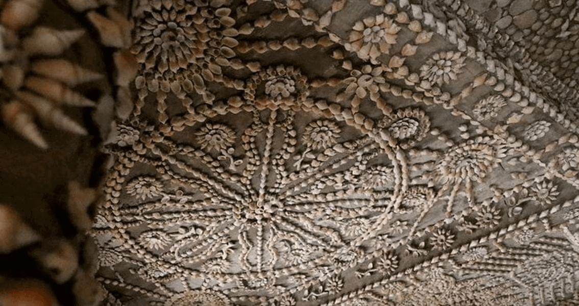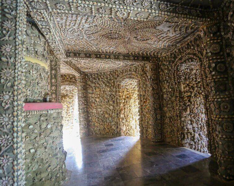 Những họa tiết,hoa văn bắt mắt kết hợp bởi các vỏ ốc,vỏ sò khiến không gian tòa tháp thêm phần huyền bí,kỳ diệu .