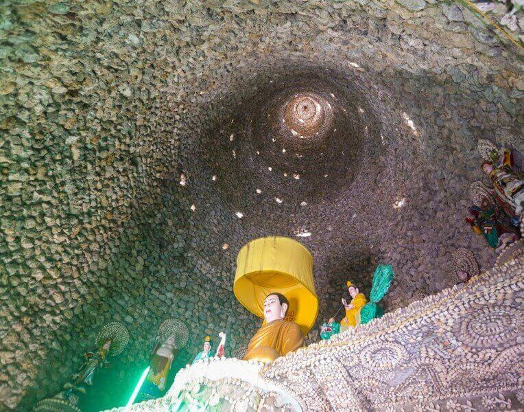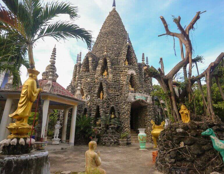 Đây là ngôi chùa độc lạ khi xây dựng từ san hô,vỏ ốc - một trong những điểm du lịch tâm linh nổi tiếng và thú vị mà du khách không thể bỏ qua.