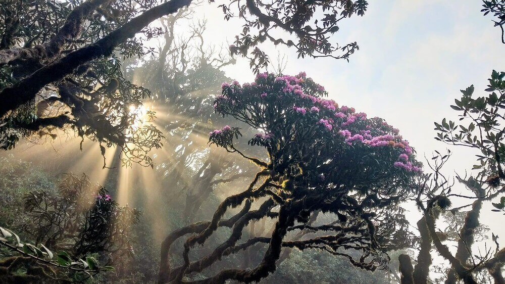 Những cây hoa Đỗ Quyên cổ thụ trong rừng nguyên sinh tạo nên nét huyền bí và hùng vĩ giữa núi rừng.