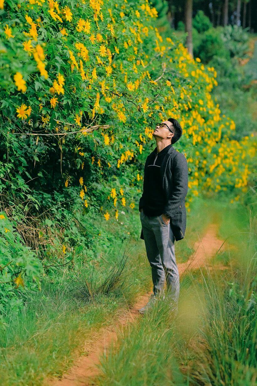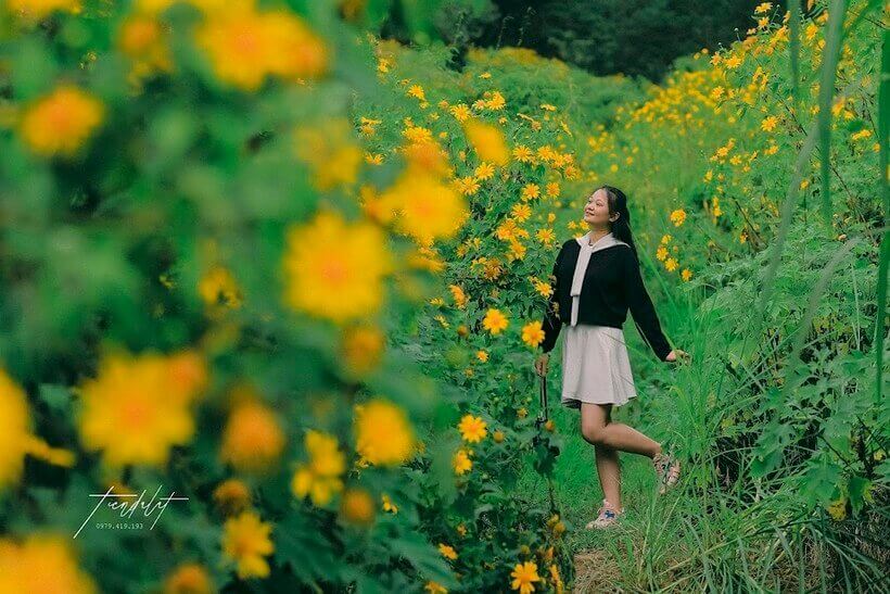 Để có những tấm ảnh đẹp với hoa dã quỳ,mọi người nên chuẩn bị trang phục nhẹ nhàng. Ảnh: Tiến Đà Lạt.