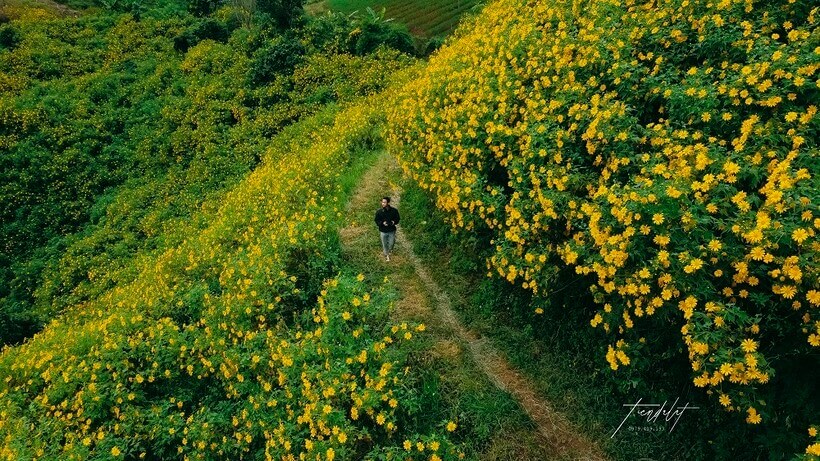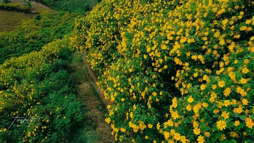 Những đồi hoa dã quỳ Đà Lạt vàng ươm. Ảnh: Tiến Đà Lạt.
