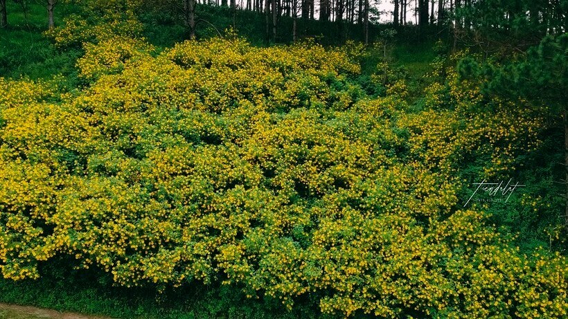 Hoa rực rỡ từ những triền đồi cao đến các thung lũng. Hoa trải vàng như thảm dưới các rừng thông,hoa ven hồ,ven tường rào của những ngôi nhà. Hoa dọc các lối đi,quanh co theo đường đèo,sườn dốc...