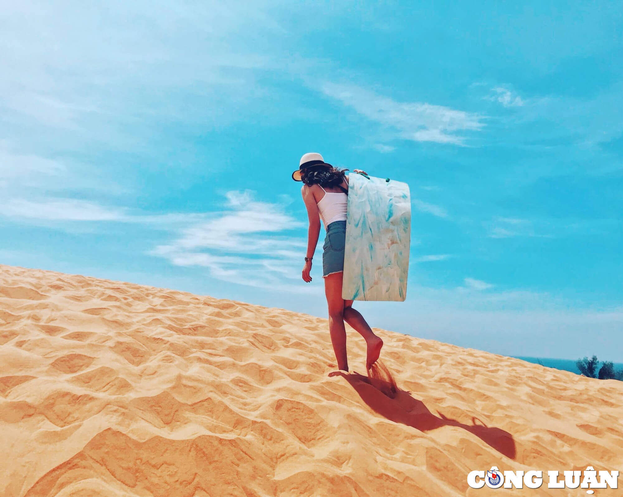 Chị Lê Ngọc Anh,một du khách,cho biết: “Cảm giác bay trong bụi cát hồng cuồn cuộn với cái nắng chói chang,rực rỡ thật thú vị biết bao. Tôi cùng gia đình đã đến đây từ sớm để chiêm ngưỡng sự thay đổi của đồi cát. Khung cảnh ở đây trải dài như sa mạc vậy”.