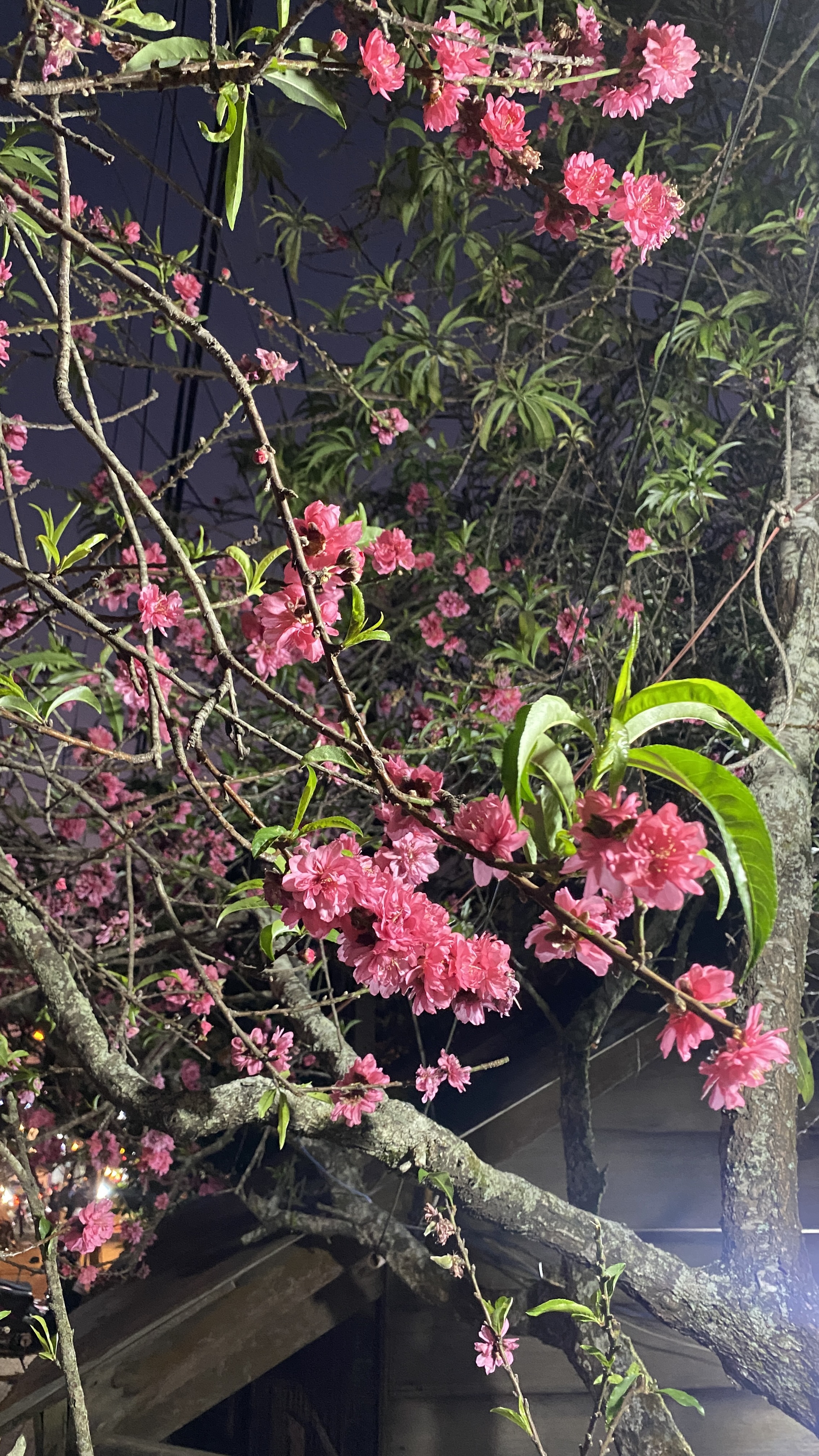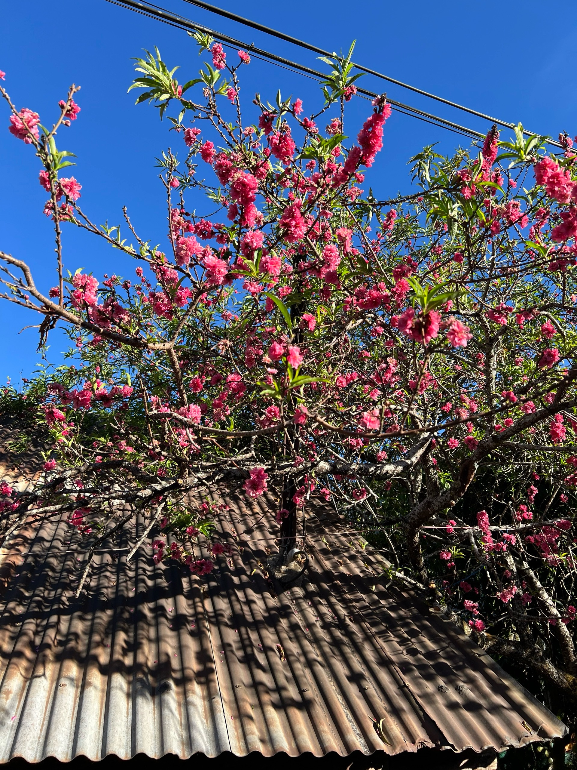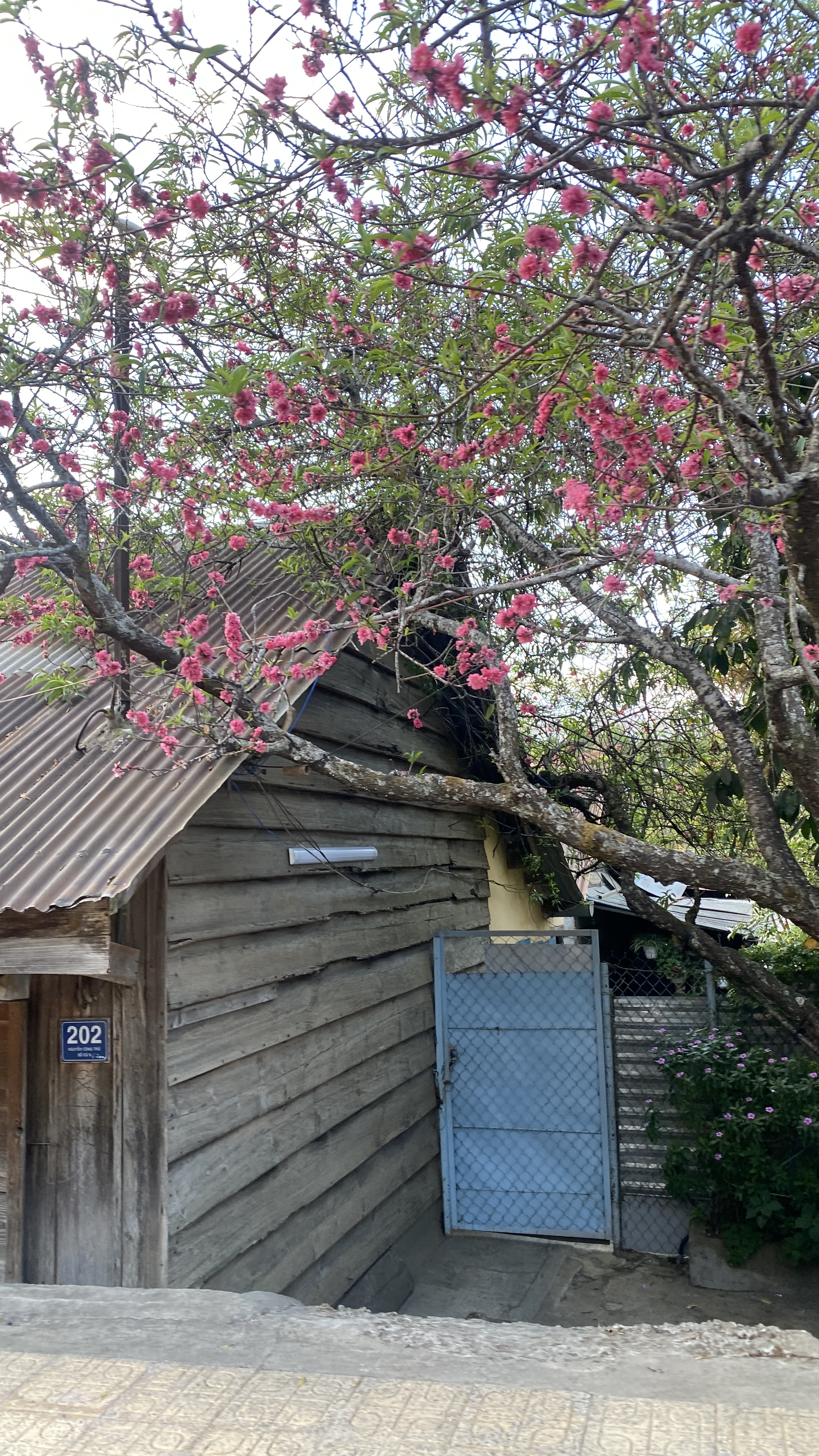 Cây đào đang nở rực ở đường Nguyễn Công Trứ,TP Đà Lạt
