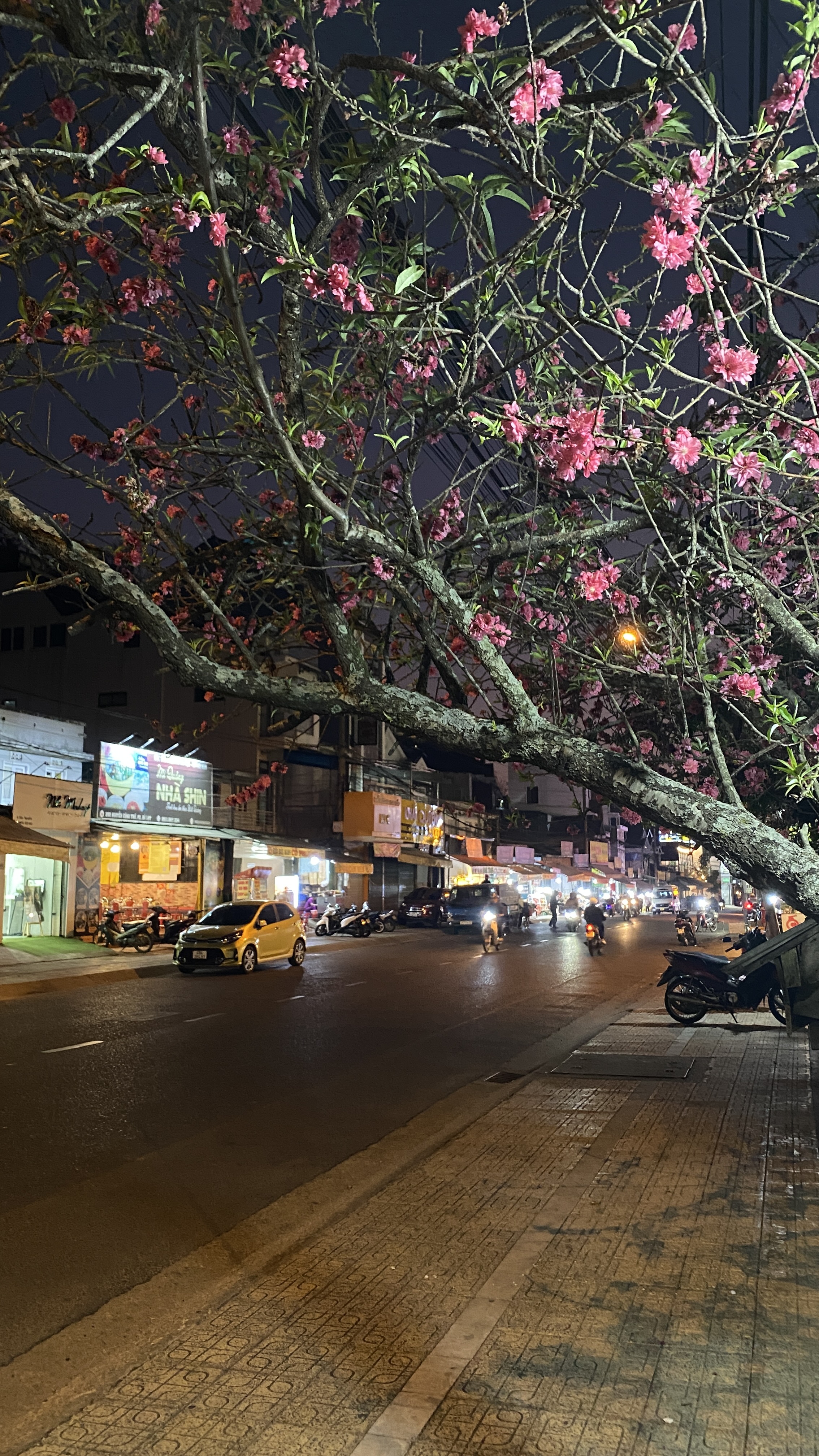 Cây đào này nằm kế bên quán cà phê Là Việt ở số 200 Nguyễn Công Trứ