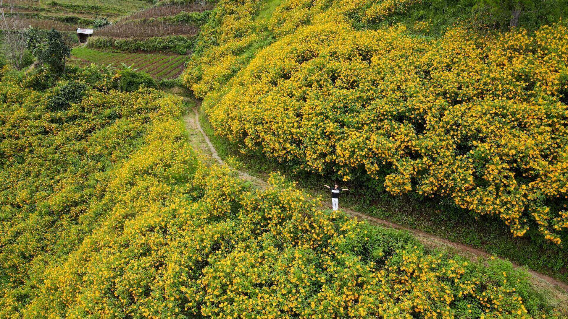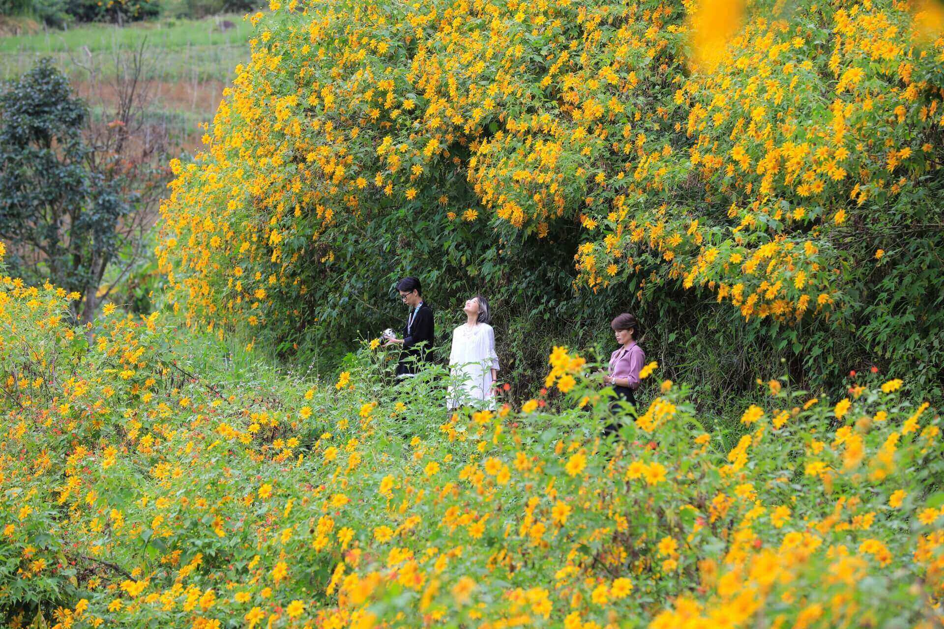 Say đắm với vẻ đẹp của những hàng rào hoa dã quỳ nở rộ bên những ruộng hoa ven đồi