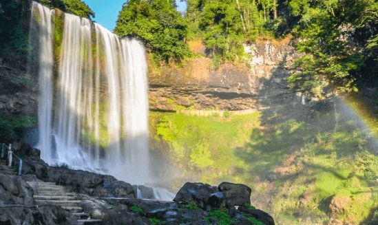 Vượt qua 138 bậc thang dựa trên vách đá cheo veo bạn sẽ lên được đỉnh của ngọn thác,đây là một trải nghiệm khá lý thú mà bất cứ du khách nào khi đến với ngọn thác này cũng muốn một lần chinh phục. Dưới chân thác là hồ nước chứa những tảng đá lớn được phủ đầy rêu phong,càng tạo thêm nét nguyên sơ và quyến rũ cho khu du lịch.