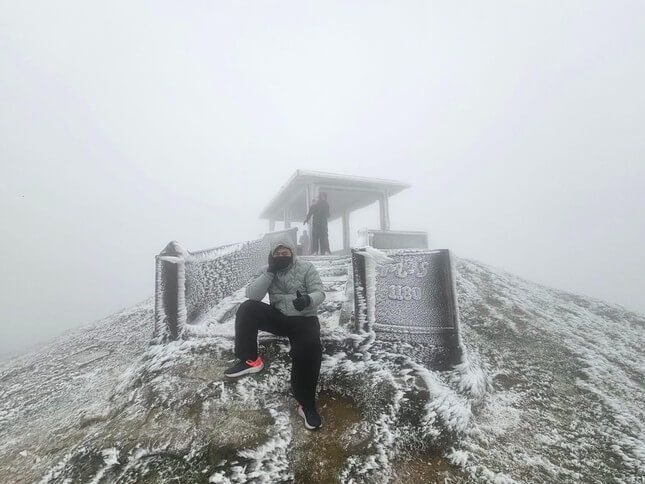 Băng giá xuất hiện trên đỉnh núi Mẫu Sơn. Ảnh: Tien Thinh.