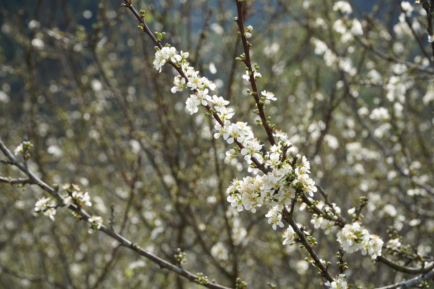 Hoa mận nở bung như những bông tuyết,tựa “chiếc thảm bông” giữa đất trời. Ảnh: Hoàng Vũ