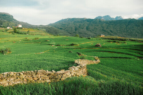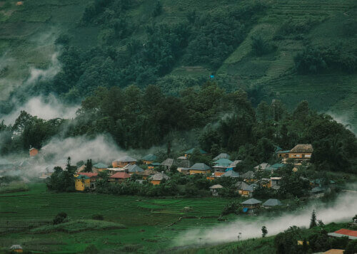 Từng ngôi nhà san sát nhau giữa màu xanh bạt ngàn của núi rừng,của ruộng lúa khiến Y Tý hiện lên thật yên bình và tràn đầy sức sống