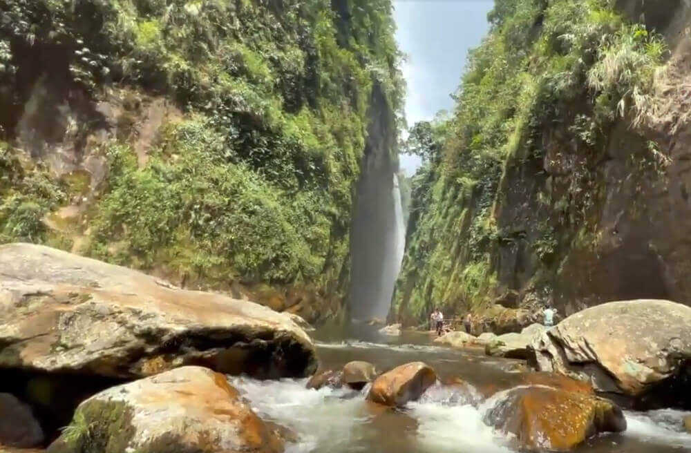 Giữa hai vách núi đá tạo nên một khoảng giữa như mặt hồ,nơi có làn nước trong xanh mát rượi,thích hợp để tắm và thư giãn.