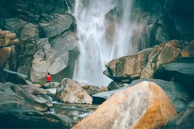 Con người nhỏ bé trước dòng thác hùng vĩ (Ảnh: VietNam Booking)