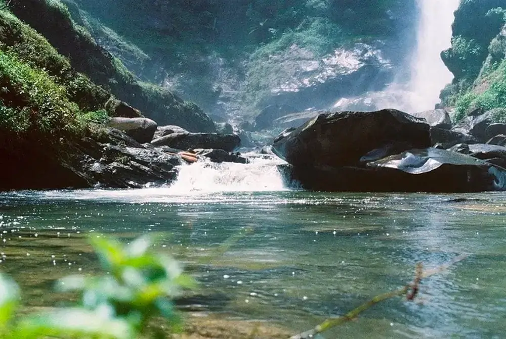 Hồ nước kì ảo ngay dưới chân thác (Ảnh: manhtuannguyen)