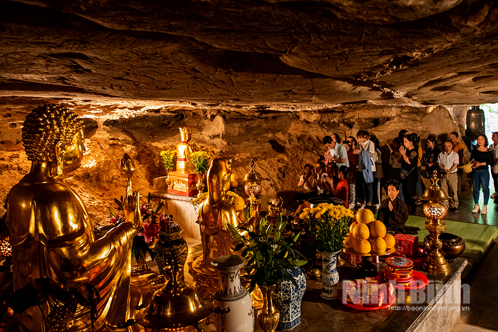 Phật tử và du khách gần xa tu tập và chiêm bái tại chùa Bái Đính cổ.