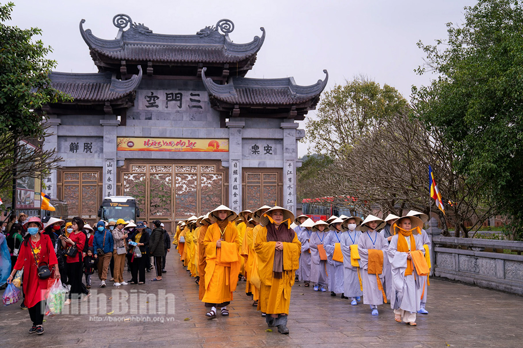 Trường Trung cấp Phật học Thừa Thiên Huế đến tu tập và du khách thập phương vãn cảnh tại chùa Bái Đính.