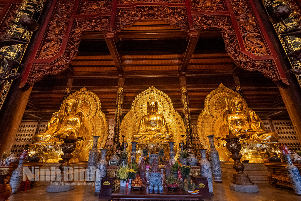 Tượng phật tại điện Tam Thế chùa Bái Đính.