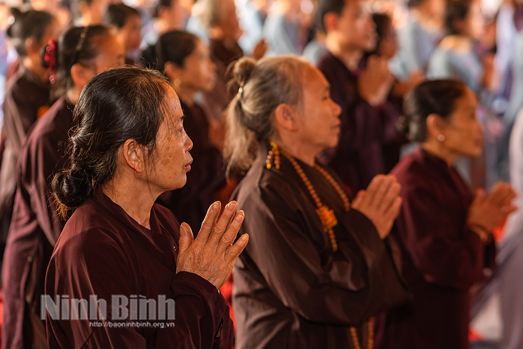Rất đông các tăng ni, phật tử cùng tụng kinh tại Lễ Ngũ Bách Danh kính mừng ngày Quán Thế Âm Bồ tát tại Chùa Bái Đính.