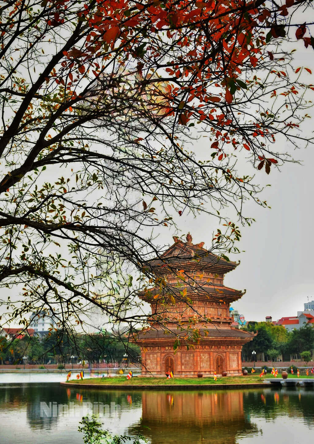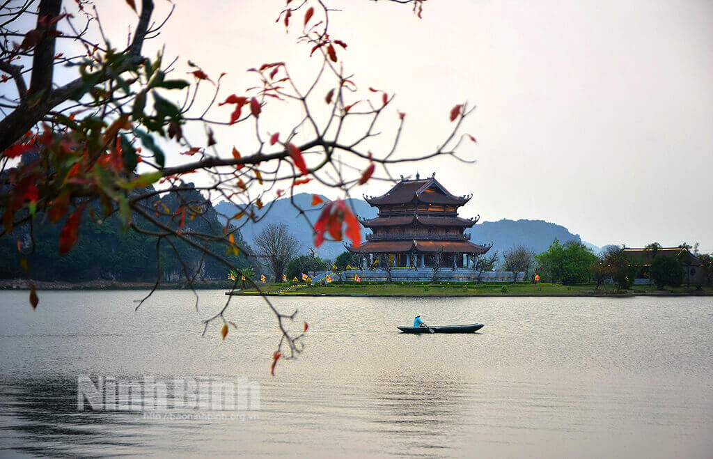 Bến Tràng An ẩn mình sau sắc lá đỏ.
