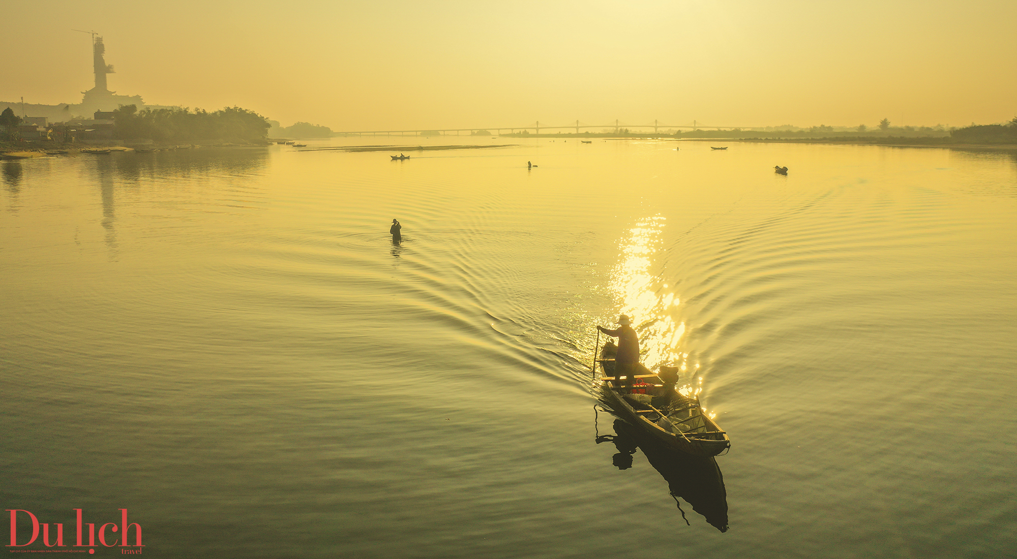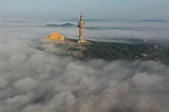 Vào ngày mới,ngôi chùa Minh Đức ở khu văn hóa tâm linh Thiên Mã (TP Quảng Ngãi),nơi có tượng phật cao nhất Việt Nam,như lạc trôi trong biển mây huyền hoặc tạo nên phong cảnh hữu tình bên cầu Cổ Lũy bắc ngang dòng sông Trà Khúc.