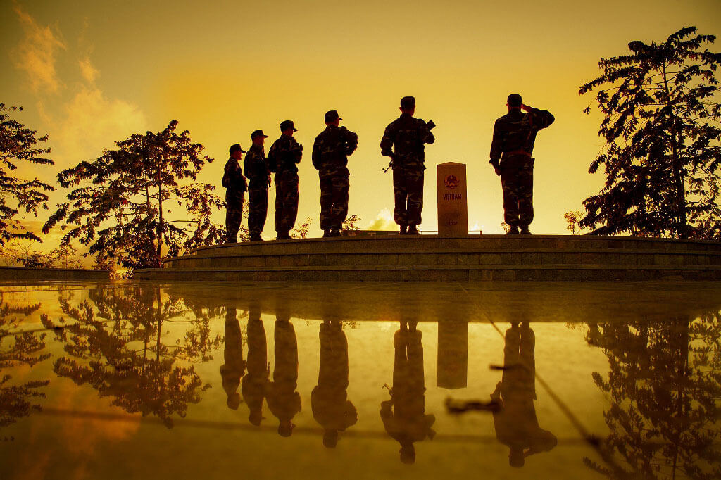 Chiều về trên cột mốc biên giới Việt Nam – Lào – Campuchia. Ảnh: Huy Đằng