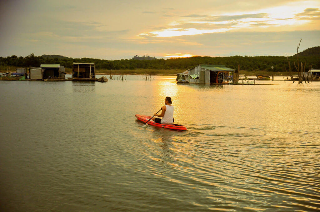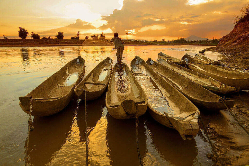 Hoàng hôn trên làng chài Ia H’drai (huyện Ia H’Drai.) Ảnh: Huy Đằng
