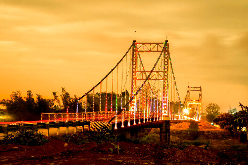 Cầu treo Kon Klor lúc lên đèn. Ảnh: Huy Đằng