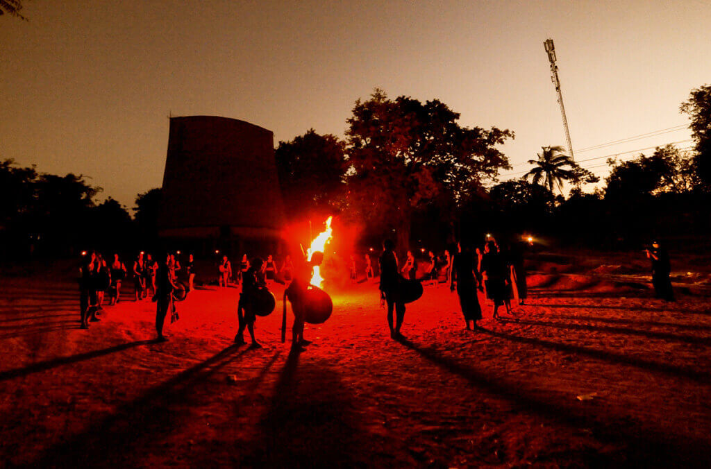 Nhà rông Kon Jơ Dri (thành phố Kon Tum) dưới ráng chiều. Ảnh: Huy Đằng