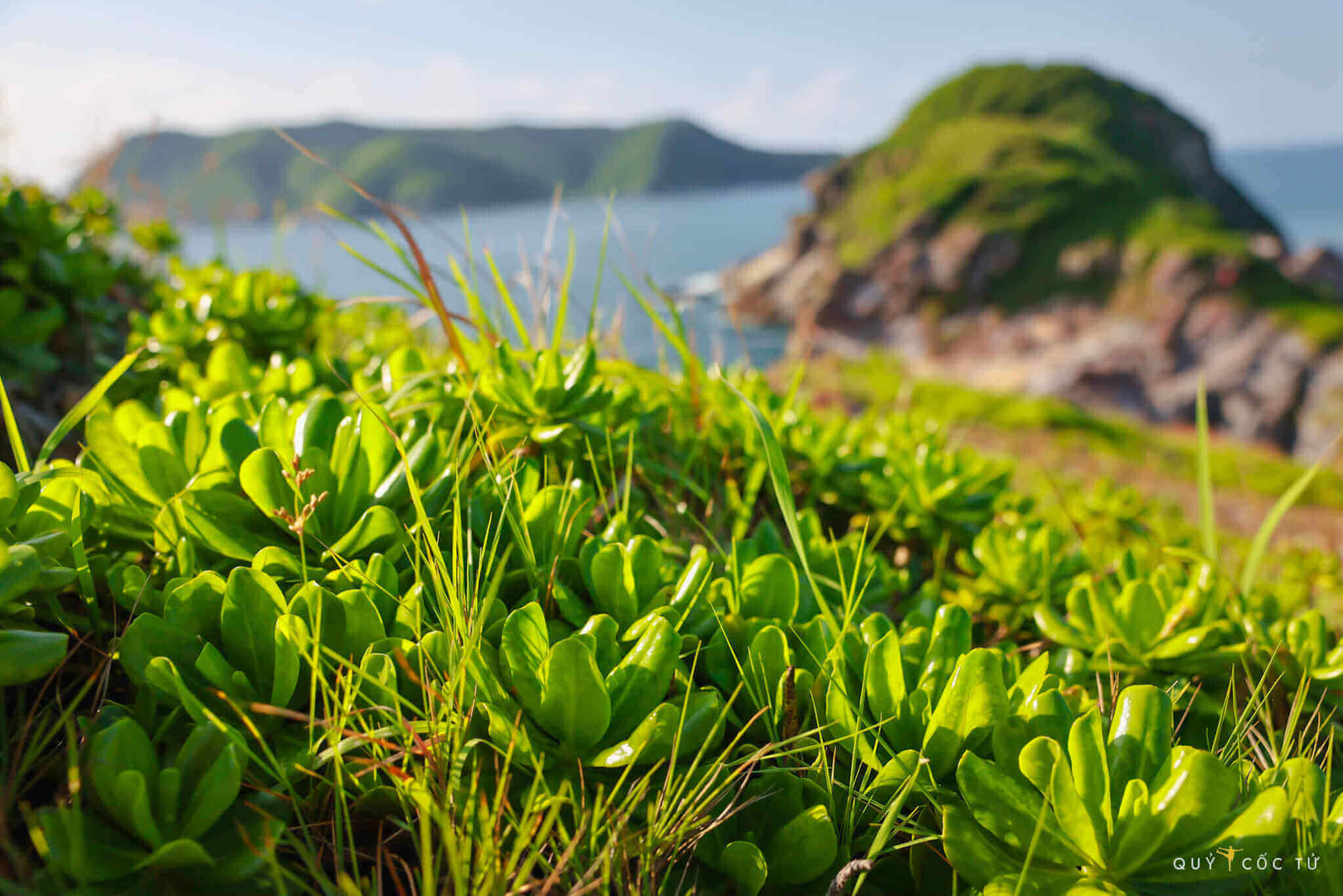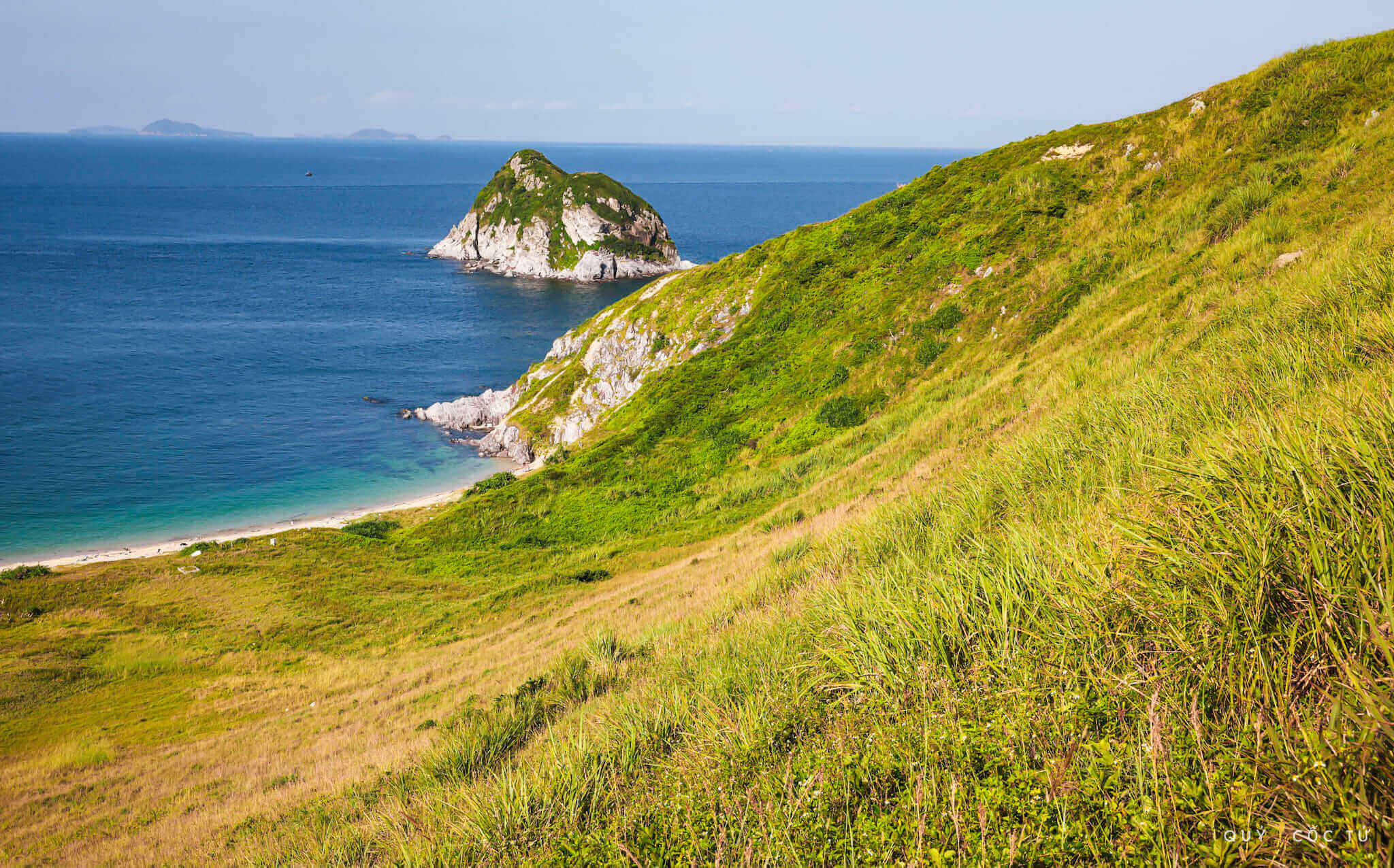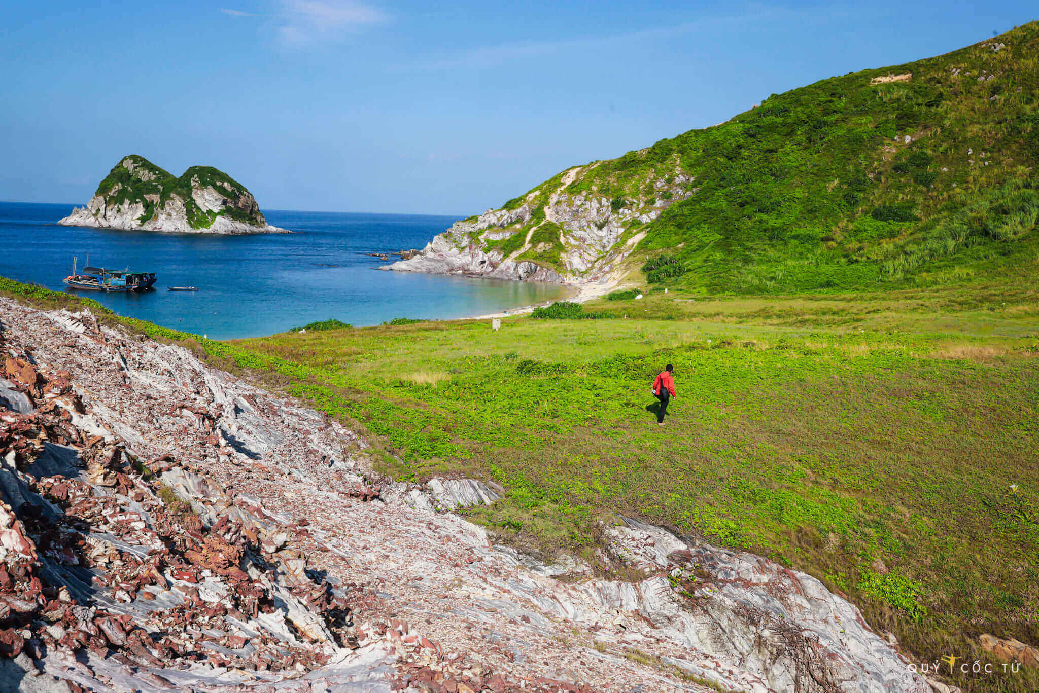 Đảo Trần Nhạn tạo thành một vòng cung của đất đá và cỏ cây ngay giữa đại dương.