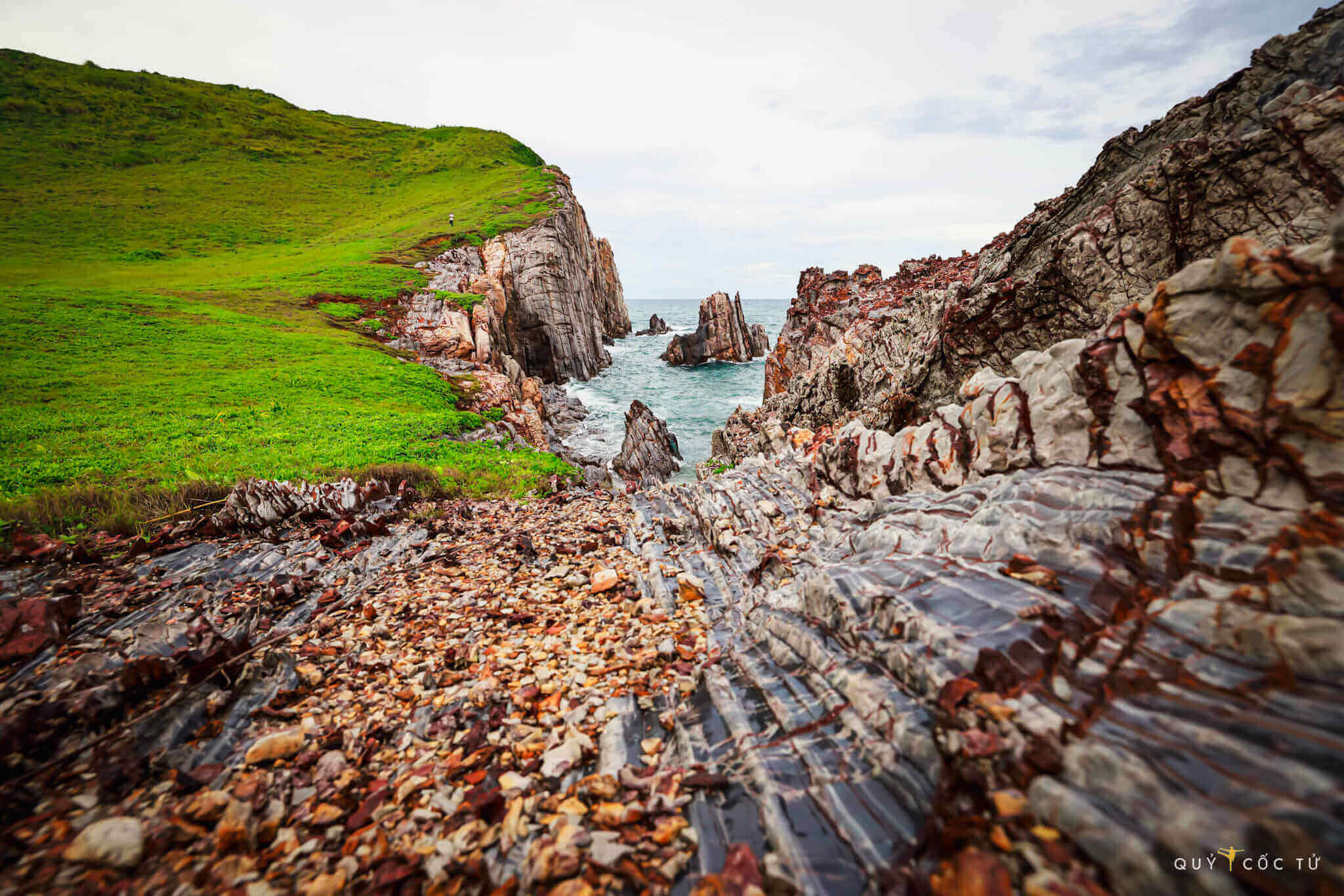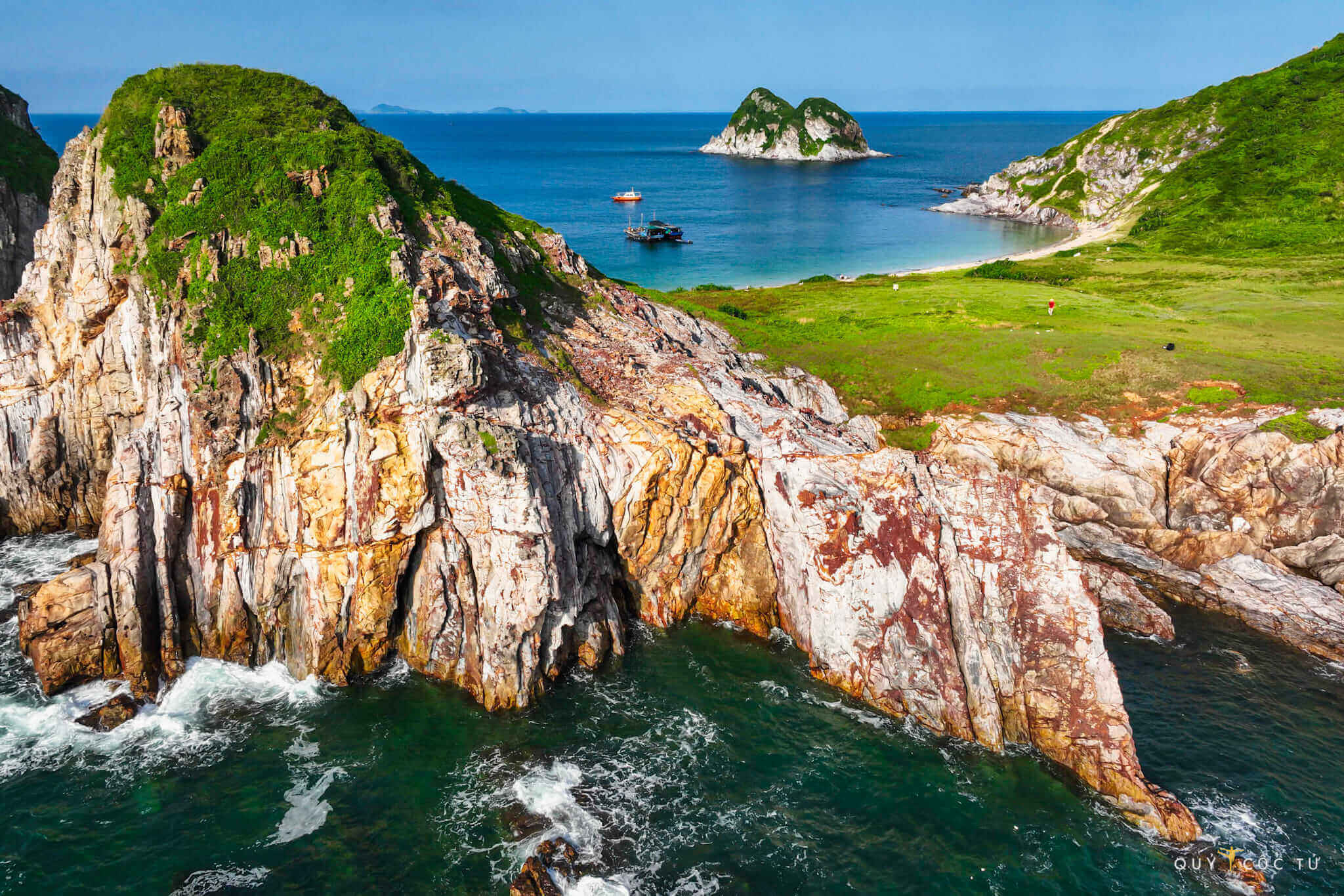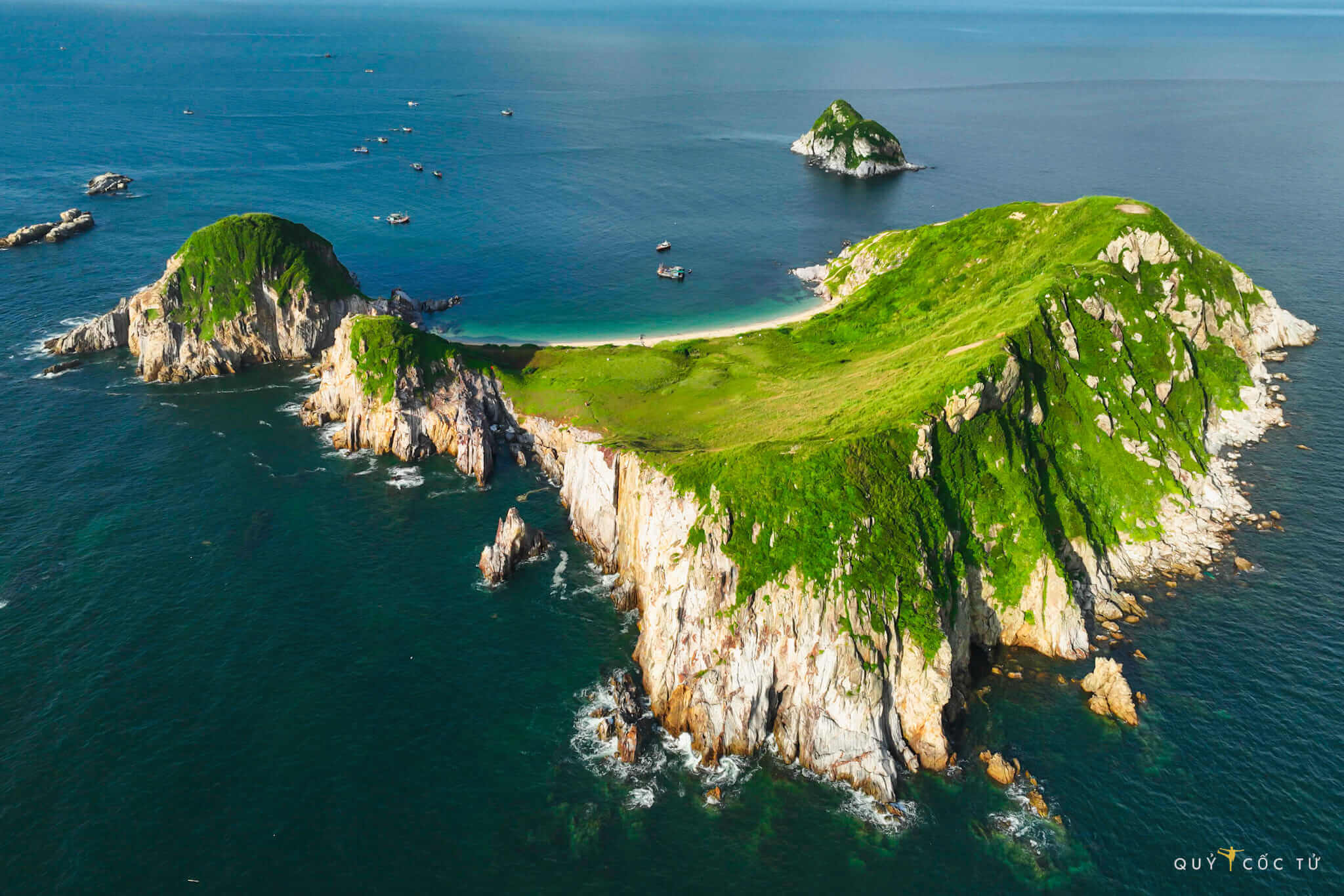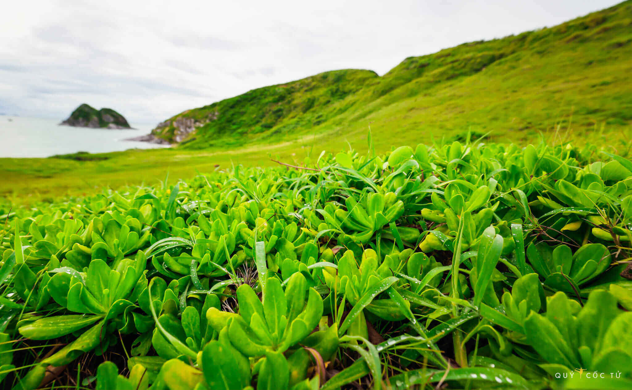 Đảo Trần Nhạn tạo thành một vòng cung của đất đá và cỏ cây ngay giữa đại dương.