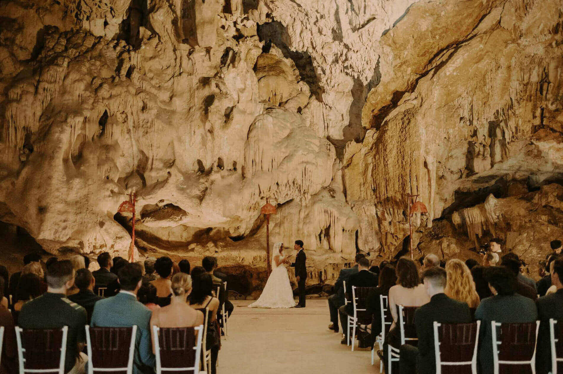 Đám cưới của cặp chú rể người Việt và cô dâu người Mỹ được tổ chức trong hang động Vĩnh Đục gây "bão" mạng (Ảnh: Huỳnh Nam Đài)
