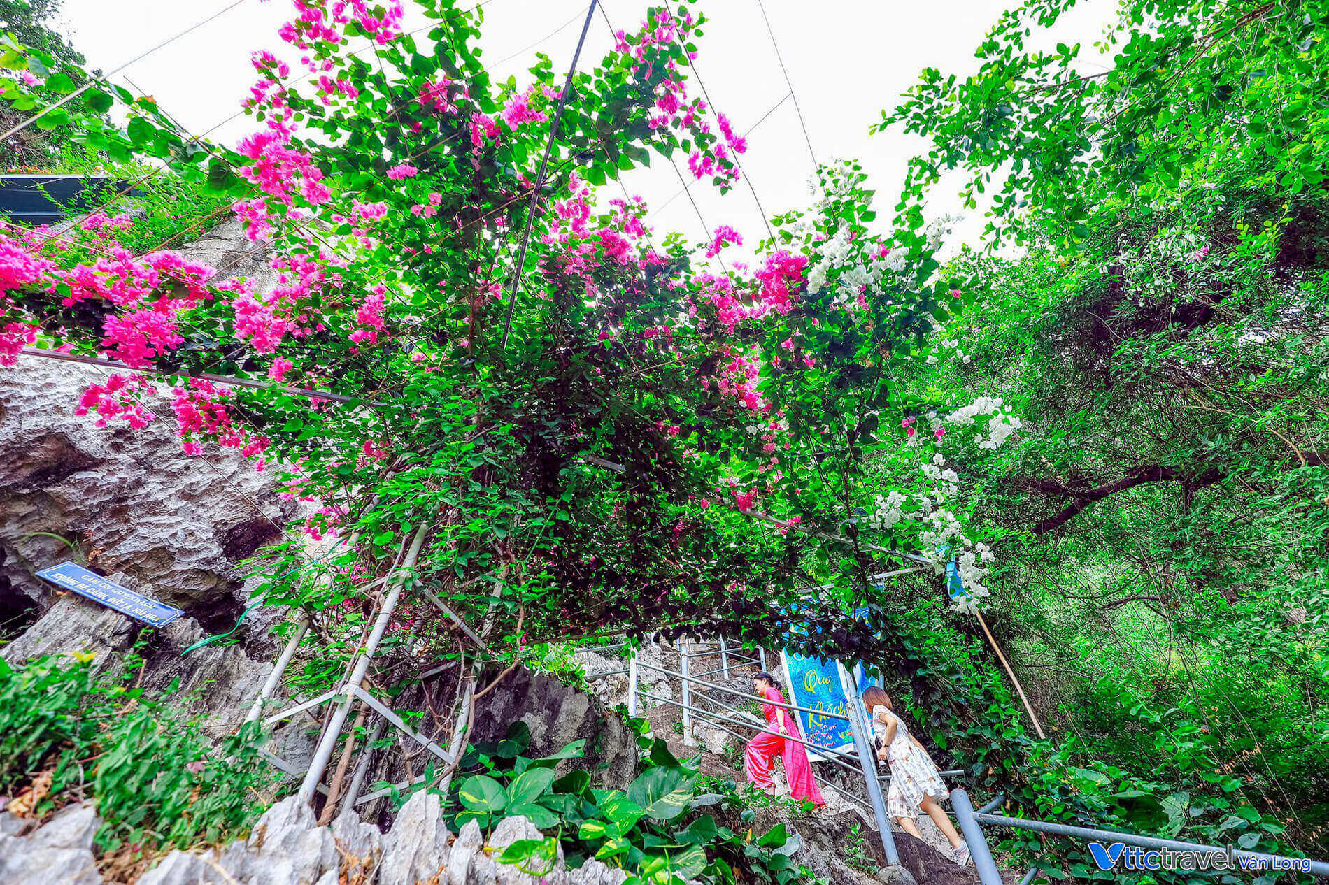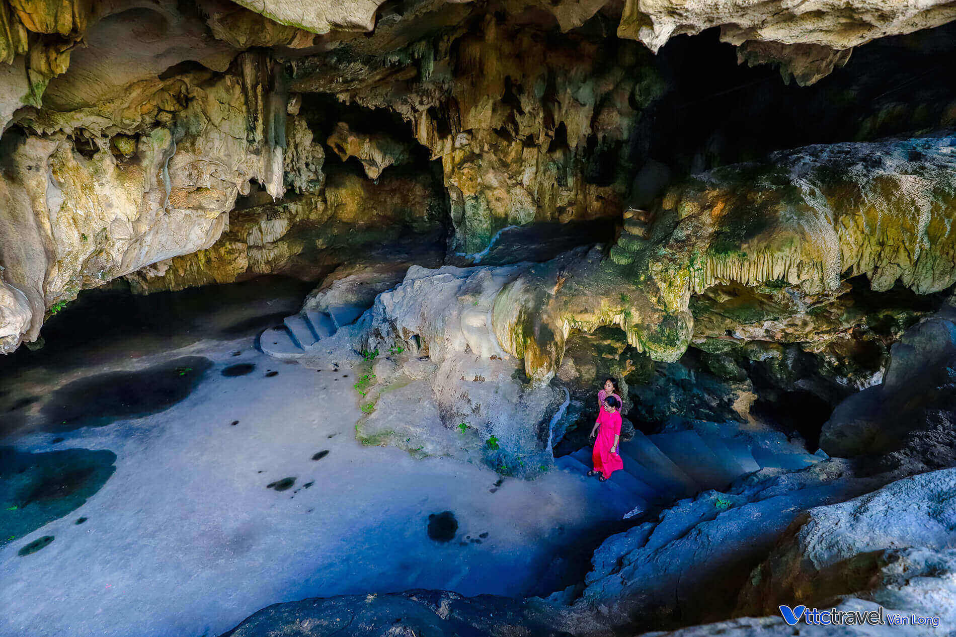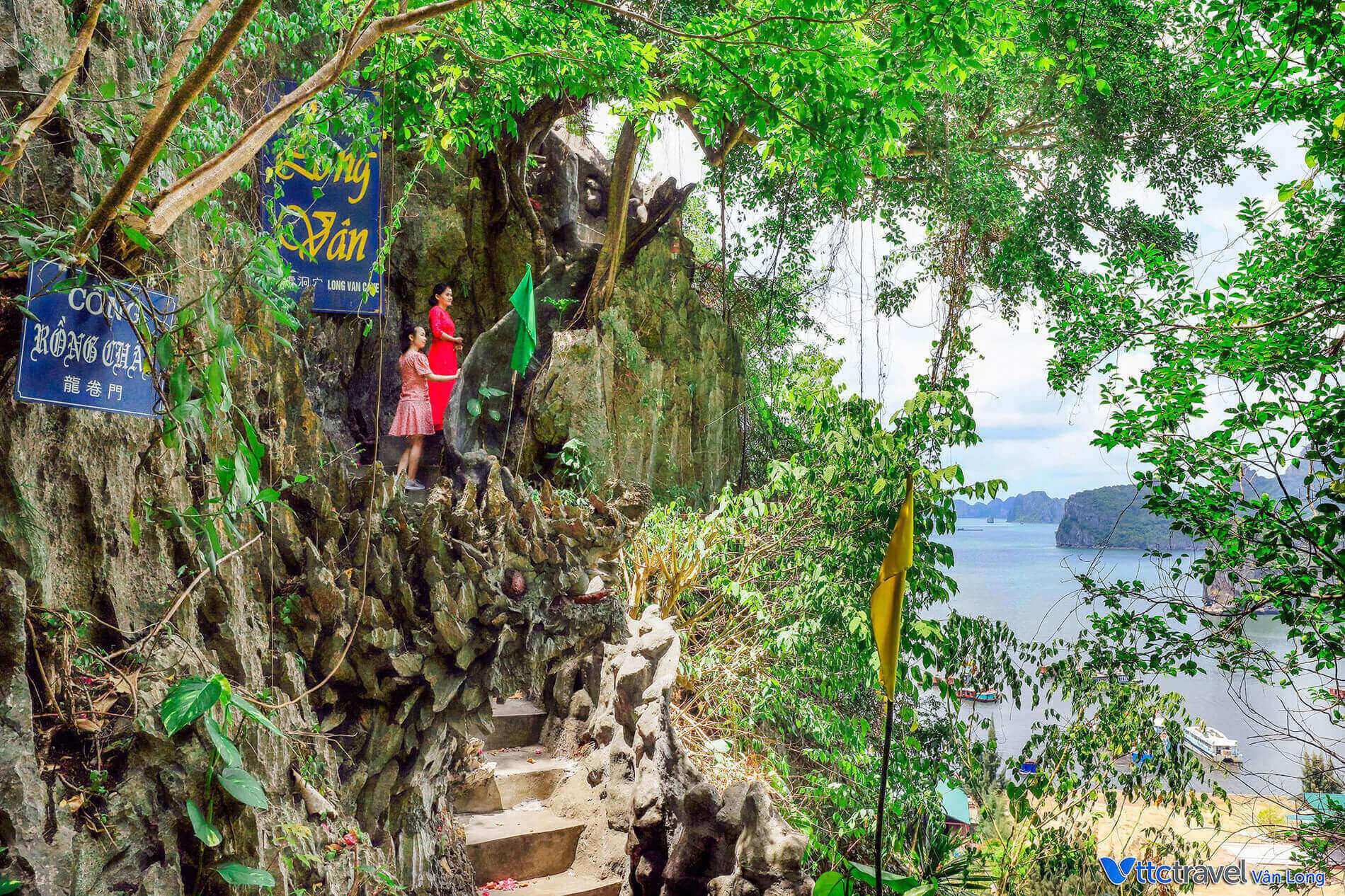 Đứng ở một số vị trí trong hệ thống hang,du khách còn có thể chứng kiến toàn bộ cảnh sắc từ trên cao,mở rộng tầm nhìn ra các hòn đảo nhấp nhô ở vịnh Bái Tử Long.